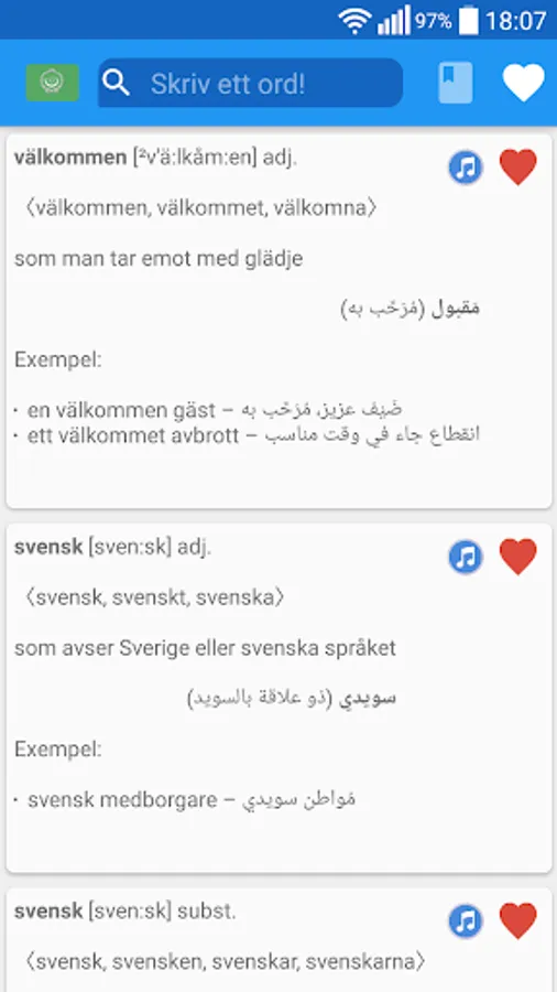 In addition to the dictionary itself, the dictionary contains information about pronunciation, word inflection, word class and translation. Most often, there are also grammar comments, glossaries, style comments, factual information, grammatical constructions and language examples.