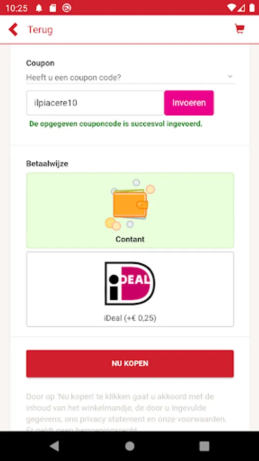 Within this app you can easily pay online via your own bank through iDeal!