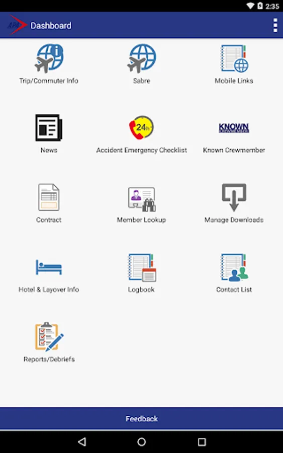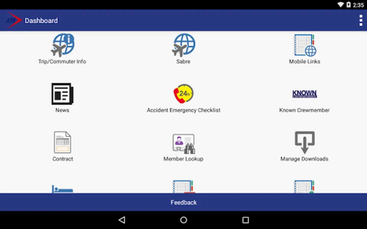 APA Mobile provides real-time flight information such as schedule, arrival/departure weather, cargo details, and crew data. The application also provides an offline flight history as well as access to general information and news updates. This version of the APA Mobile includes the following features: