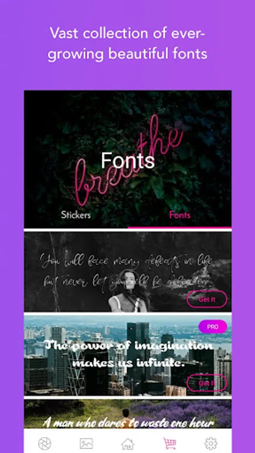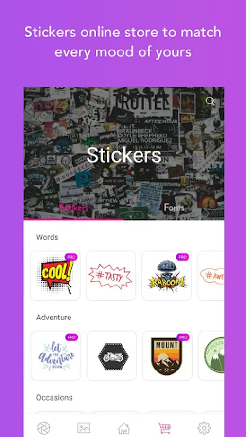 Always up, always upto date with latest trends and moods and consistently updated online store just one touch away. Browse through wide variety of 1000+ stickers and use whatever matches your mood and style. Store also houses beautiful, breath-taking, careful chosen and curated 100+ fonts; which are available for your use with just a touch.