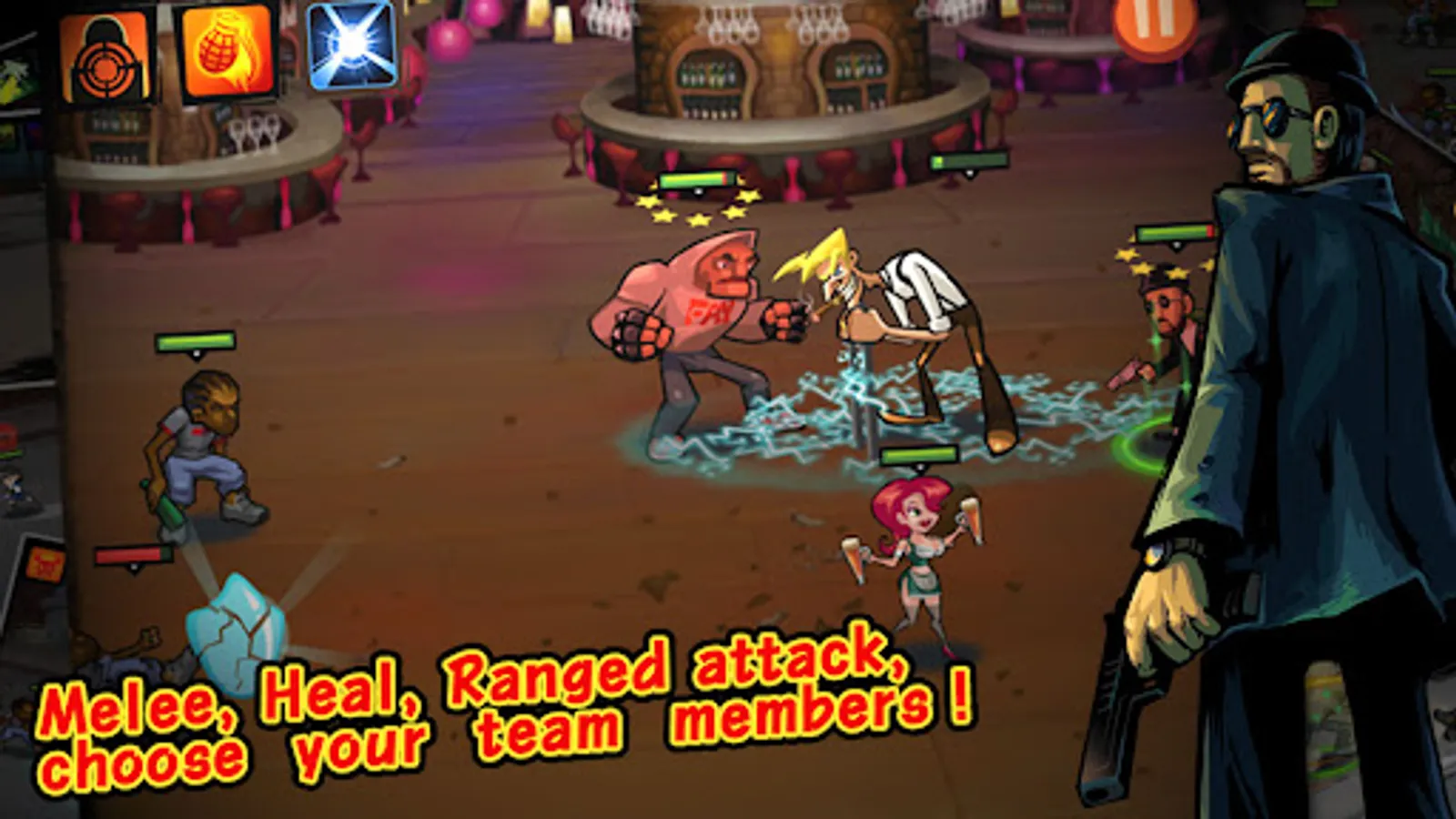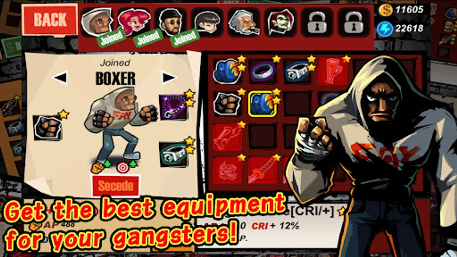 Arm your gangsters, learn varied skills. Get thousands of different grade equipments for each gangster!