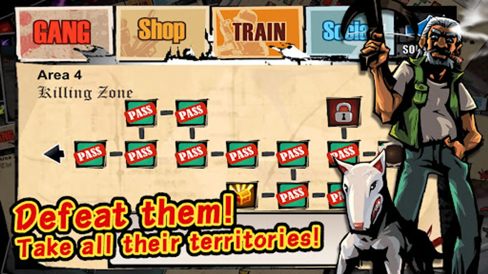 - Arm your gang members with thousands of equipments, make their avatar brilliant and strong. Show them to your enemies and take all the territories!