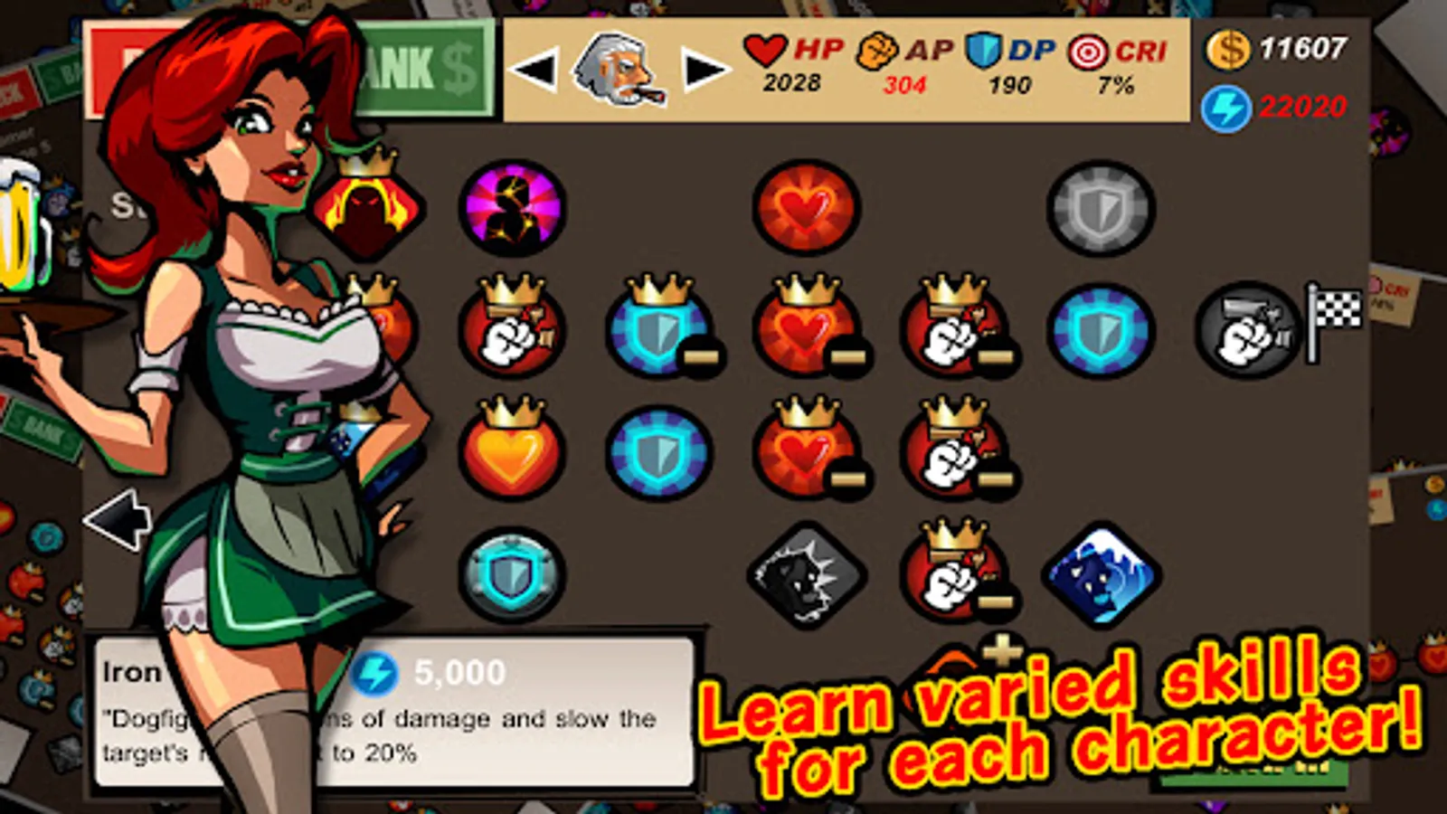 Boxer, Barmaid, Gunner, Tachi, Tamer, KungFu, Punk and Vampire, choose 4 of them, upgrade them!