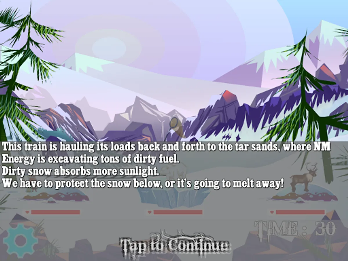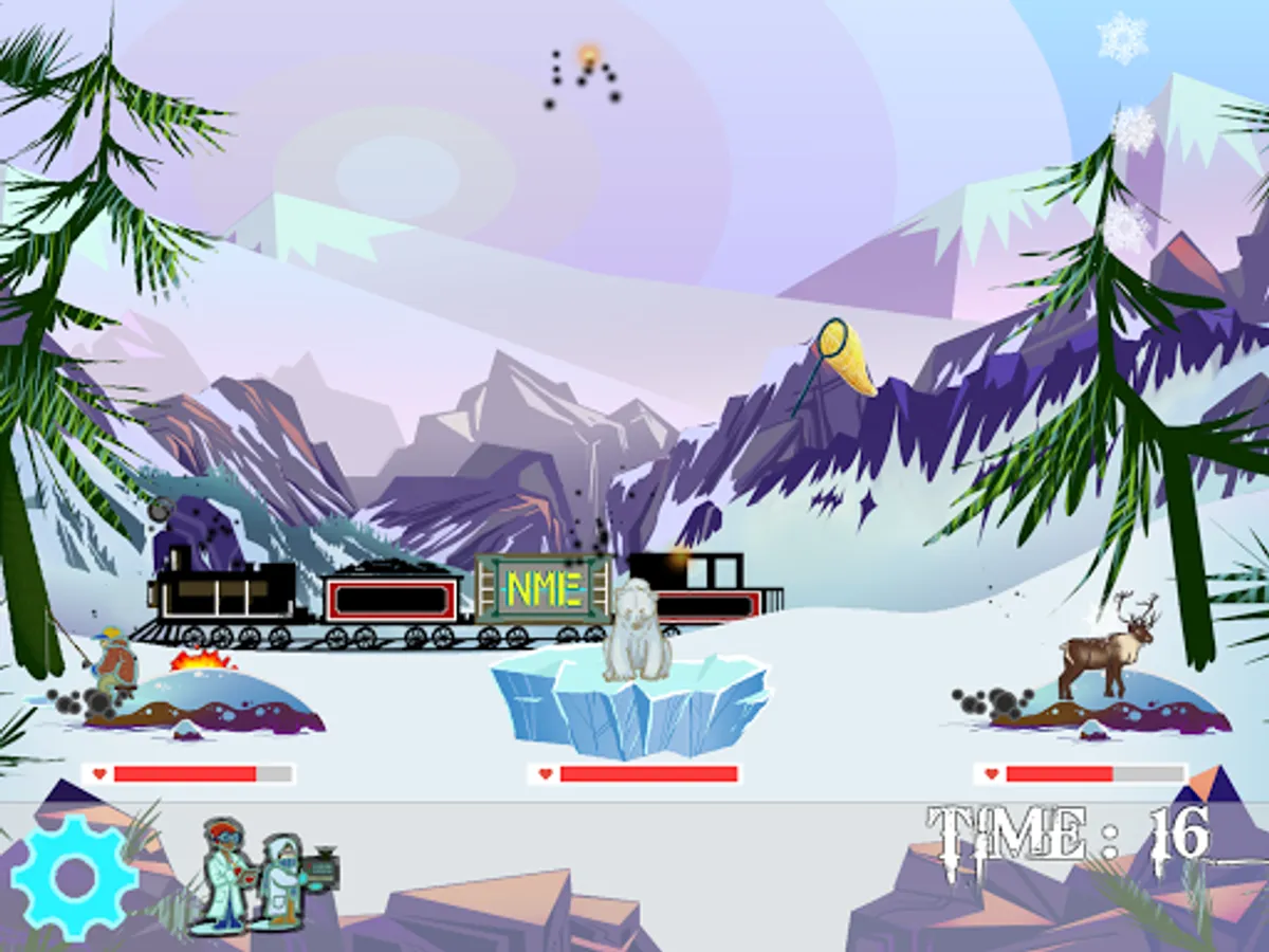 My home in the wild northwest of Alaska is usually so beautiful and snowy! But since NM Energy has moved in with all of their trains, boats, and oil rigs, things have gotten messy. Their smokestacks are spitting out so much dirty soot. That yucky soot makes me cough, and it's making the snow melt away much faster!
