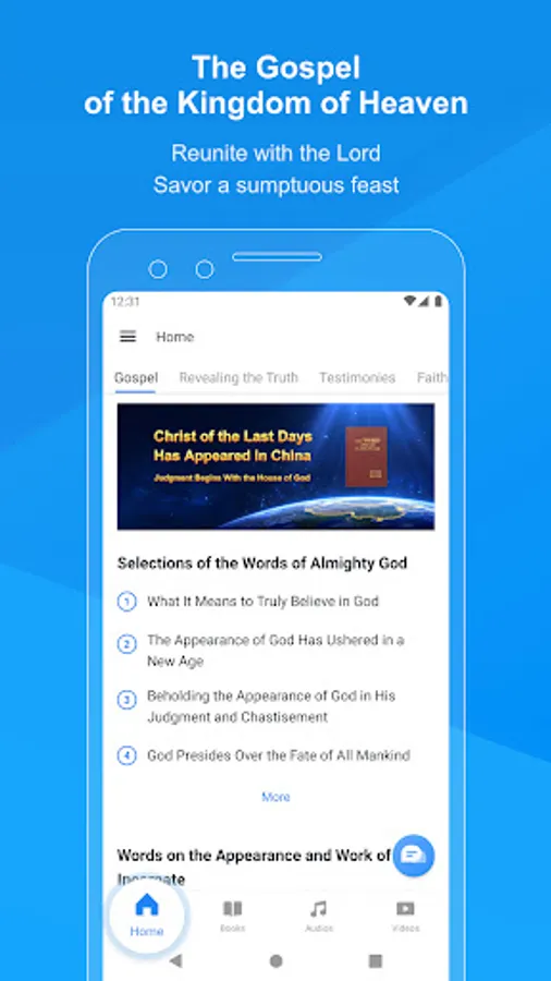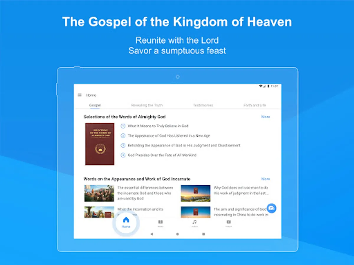 Gospel: Sections include Selections of the Words of Almighty God, The Way to Know God, and a variety of gospel truths, helping you come to know God's work of the last days.