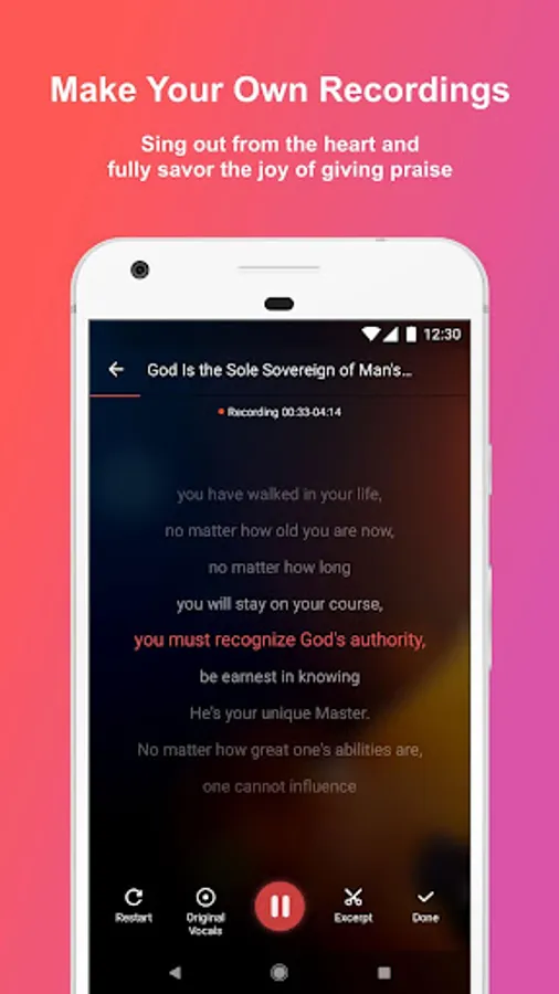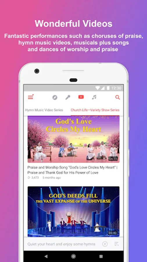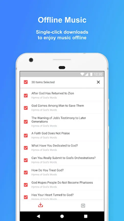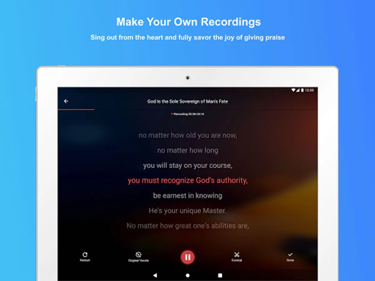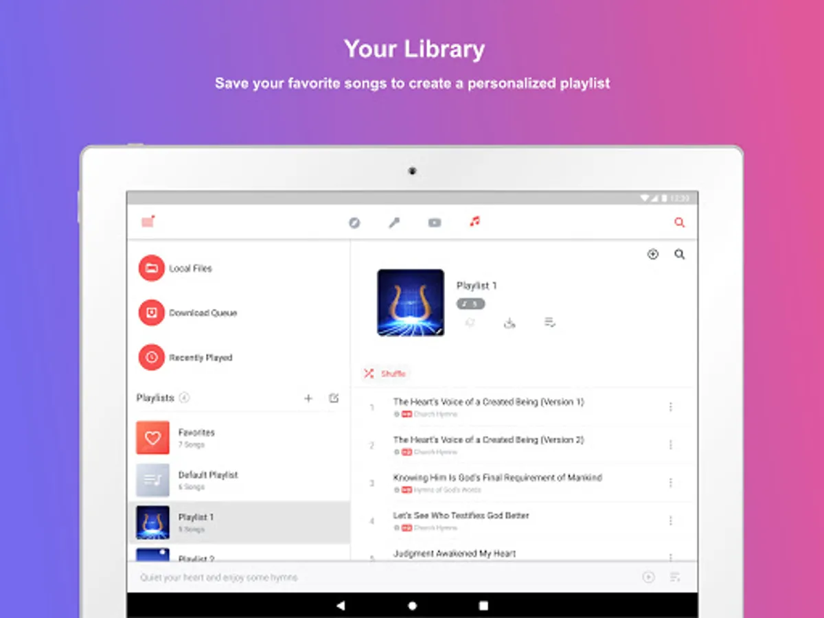 With a variety of collections to choose from, you can easily find the hymns that you enjoy. Record a cappella songs or solos, and sing out from your heart in praise of God. Easily add the hymns you enjoy to your Favorites or Playlist. With one-click downloads of the music you like, you can listen offline at any time. Toggle to see songs in different languages with a single touch for an array of global musical styles.
