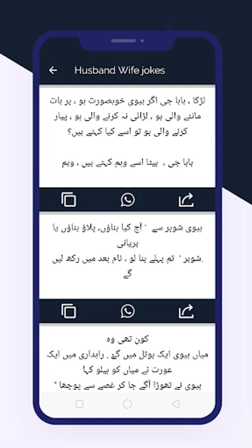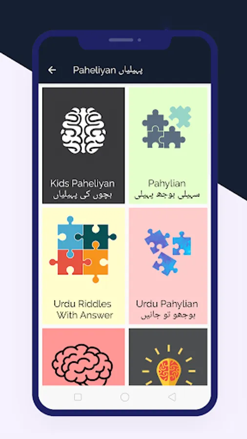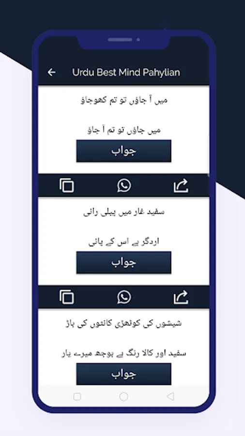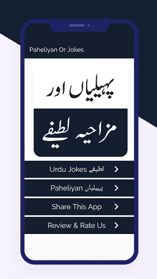 Pakistan's Best Urdu Paheliyan or Mazahiya Jokes Application with Answers. This app has a Collection of both Classic and Latest Paheliyan or Mazahiya Jokes. It will help you to have some fun guessing the answer when you get bore. You can learn riddles from it and try asking your friends and family for the answers.