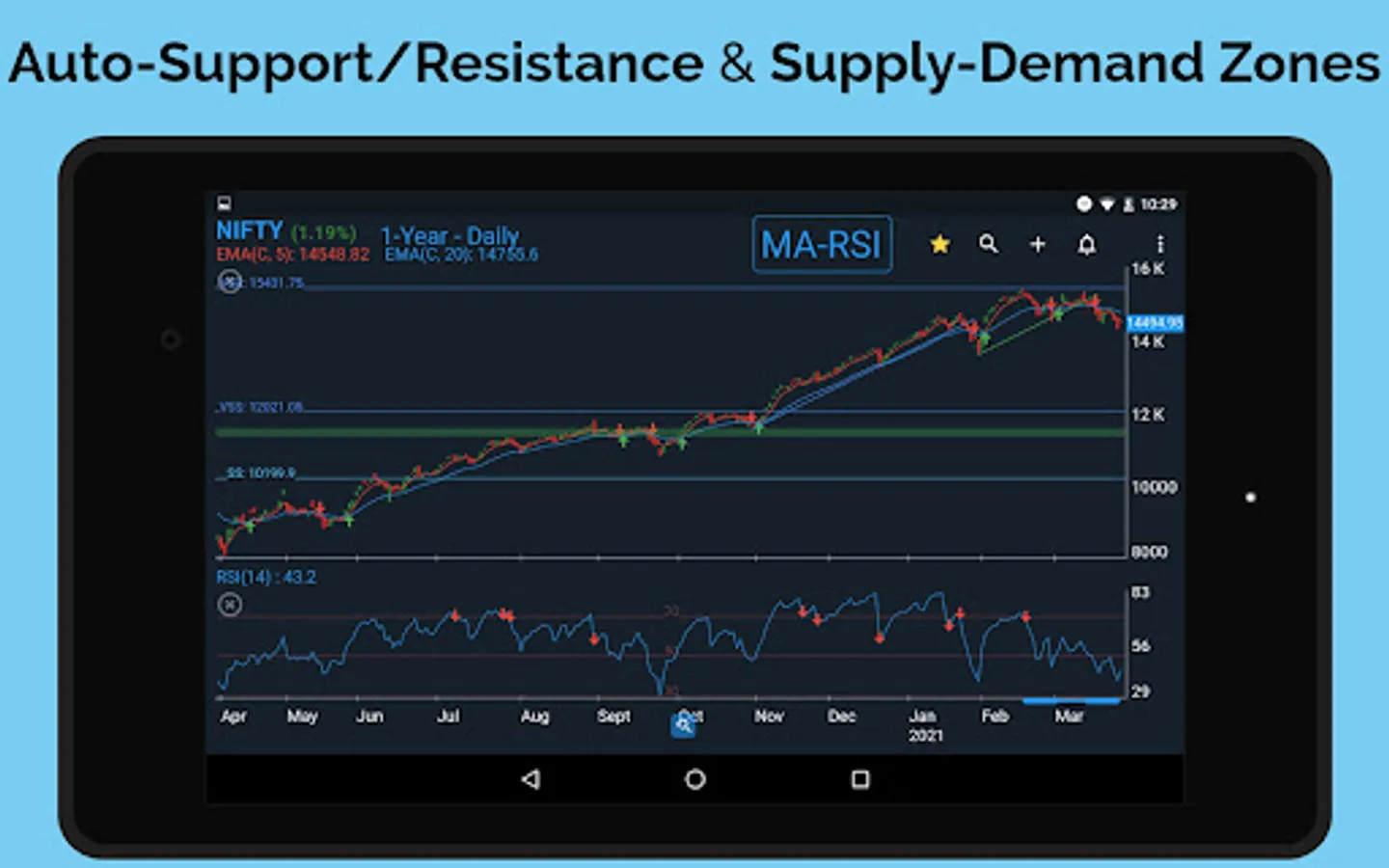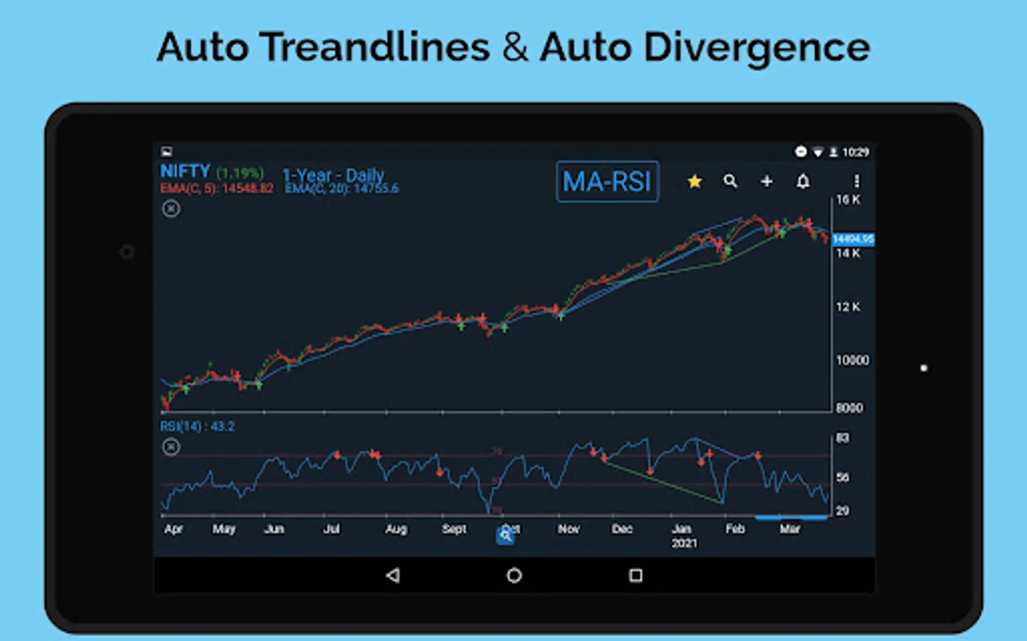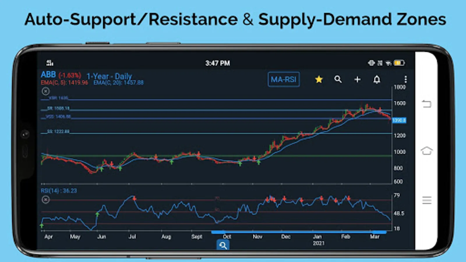 Simple yet most powerful Stock Market Technical Analysis App for Traders with Interactive Candlestick charts, 35+ Technical indicators, & 15+ EOD Scans on mobile with 1-min Real-Time data.