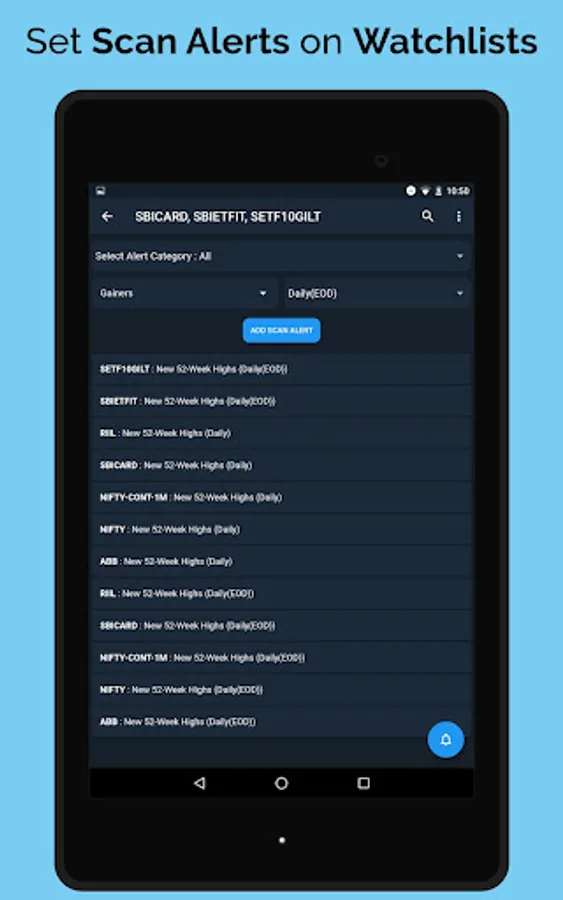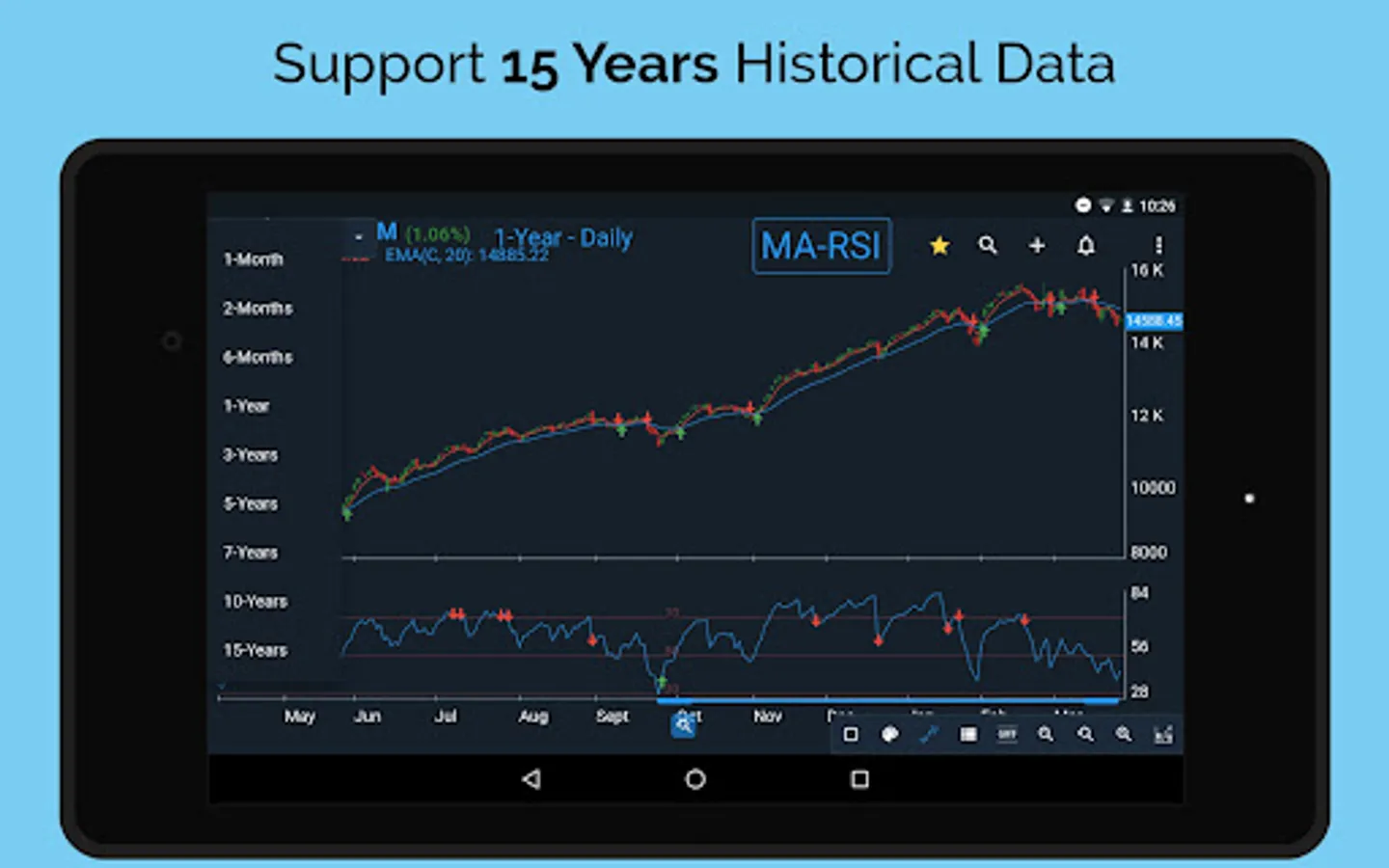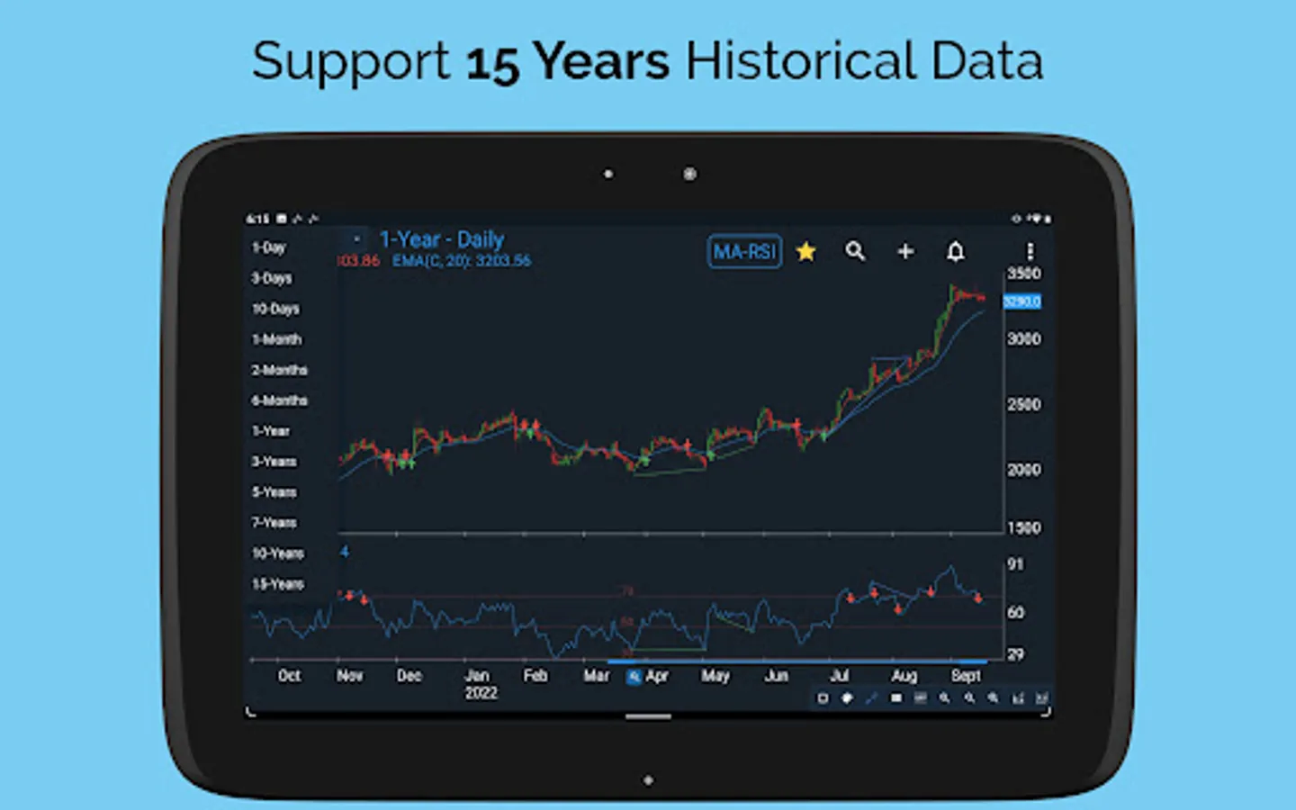 Simple yet most powerful Stock Market Technical Analysis App for Traders with Interactive Candlestick charts, 35+ Technical indicators, & 15+ EOD Scans on mobile with 1-min Real-Time data.
