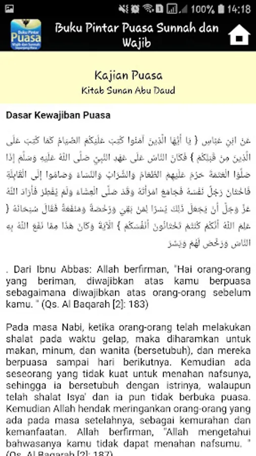 Saum or fasting for Muslims is to refrain from eating and drinking and all actions that can cancel fasting, from dawn to sunset, with certain conditions, to increase the piety of a Muslim. Fasting (saum) is one of the five Pillars of Islam. Saum literally means to hold back or prevent. often done in the context of performing worship, it is also done outside the obligation of worship to improve the quality of the spiritual life of someone who does it. This sort of thing is often found in ascetics or monks. The essence of the purpose and purpose of fasting is self restraint of a desire to achieve a goal. Therefore, fasting can be defined as an attempt to restrain themselves from a desire that is forbidden to achieve a goal.