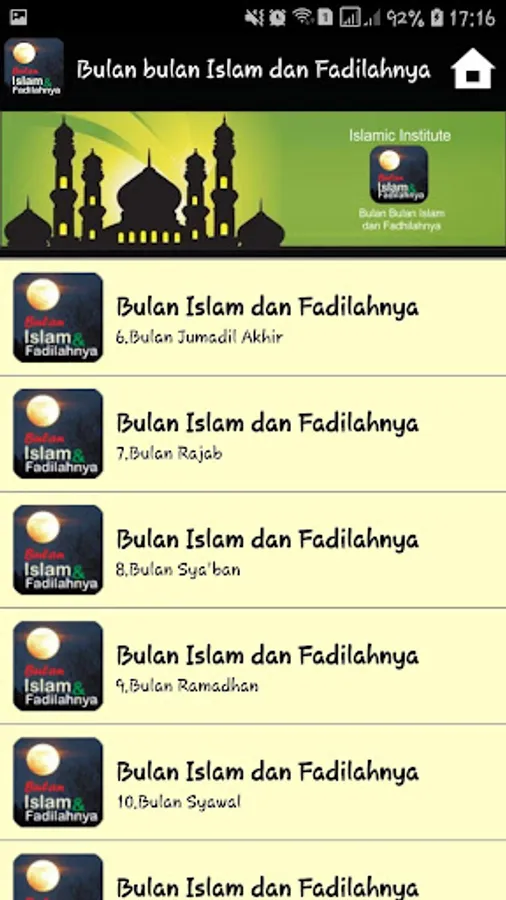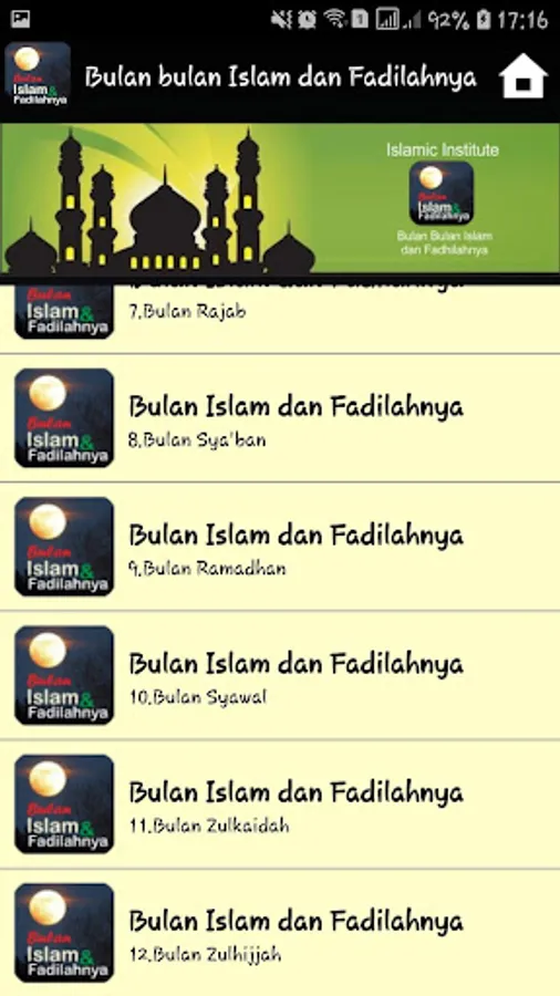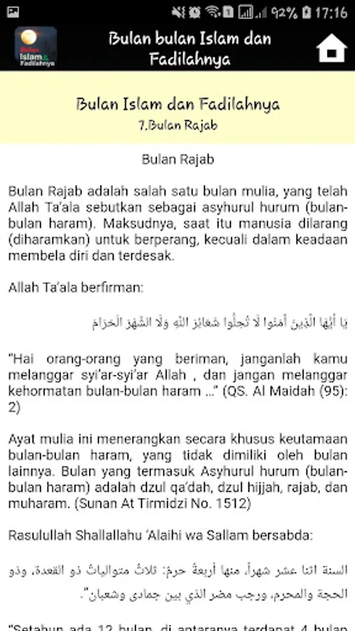 This Application Explains Main Fadilah fadilah contained in the Islamic months, which is in accordance with the explanation of the hadith of the Prophet. Describe the complete and detailed month of the month in Islam accompanied by the virtue of its virtues and practices that exist in each month.