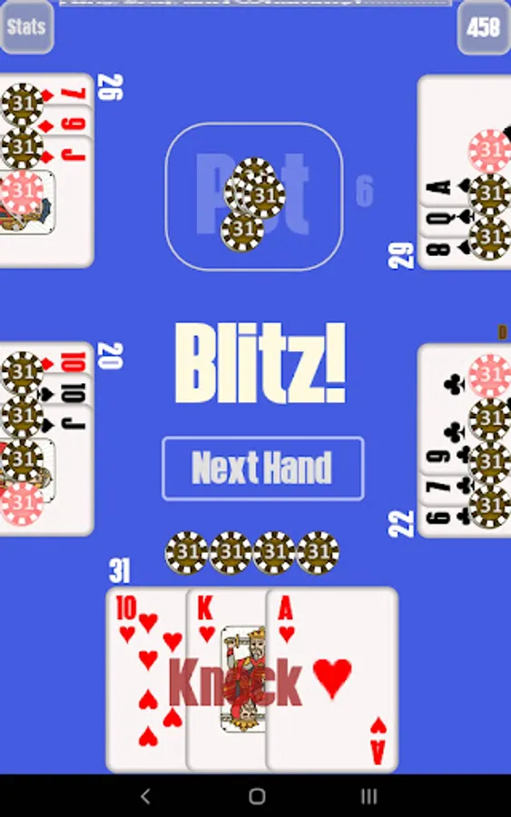 The object is to get as close to 31 (2 pictures and an Ace) or at least to not have the lowest score at the end of a hand.