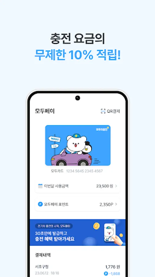 If you have issued a card every time because the operator is different for each charger/region, you can receive unlimited 10% points every time you recharge with ‘Modupay’, an NFC-based one-click integrated payment solution developed by Modo Charge.