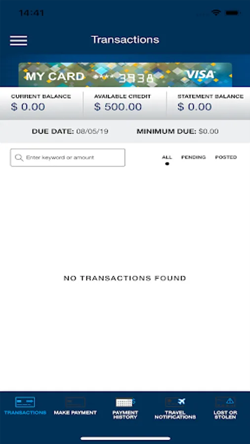 • View recent and pending transactions.