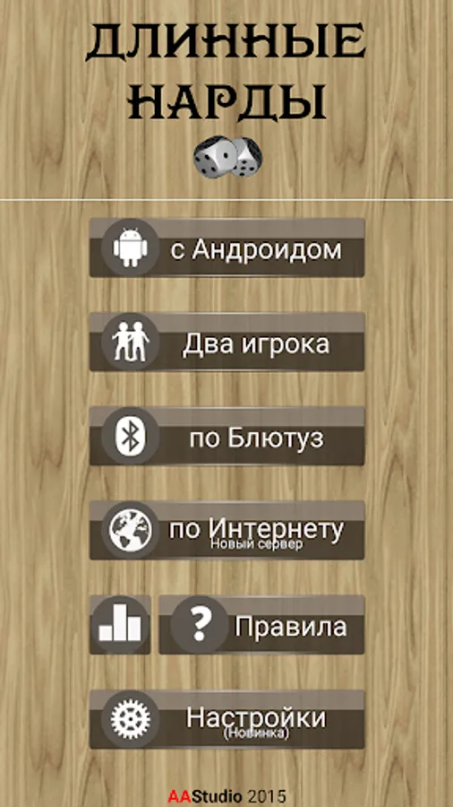 Narde is a board game for two players in which the playing pieces are moved according to the roll of dice. It's similar to backgammon, uses the same board, but it has different initial positions and rules.