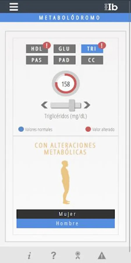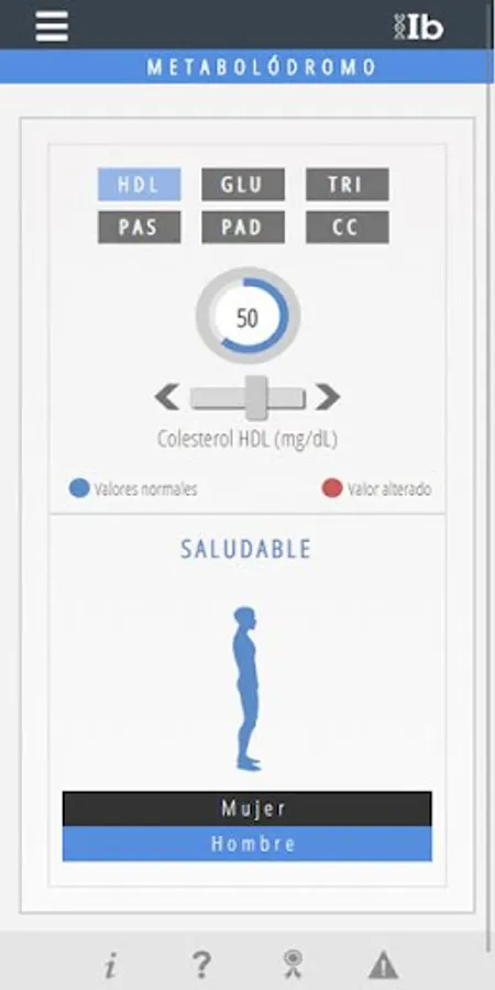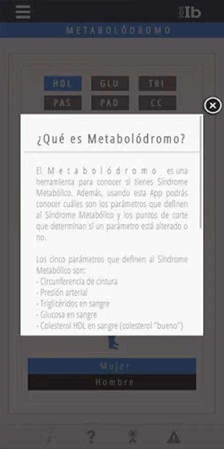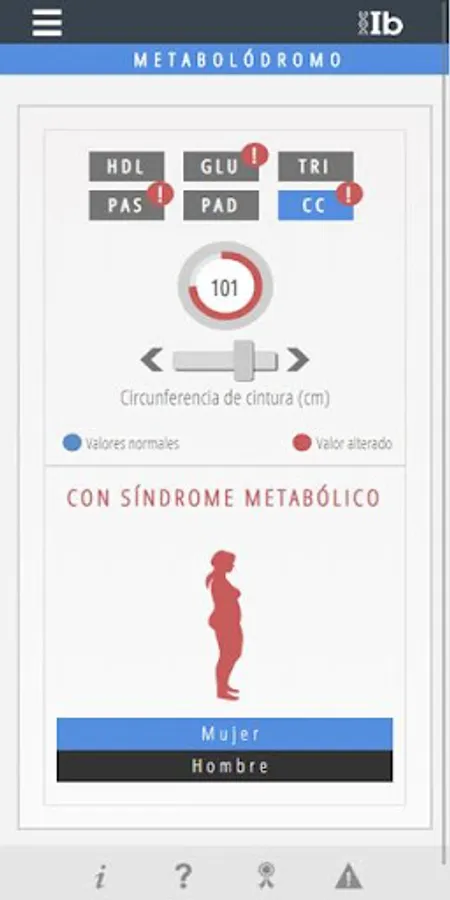 The Metabolodrome is a tool to know if you have Metabolic Syndrome. In addition, using this App you will be able to know what are the parameters that define the Metabolic Syndrome and the cut-off points that determine if a parameter is altered or not.