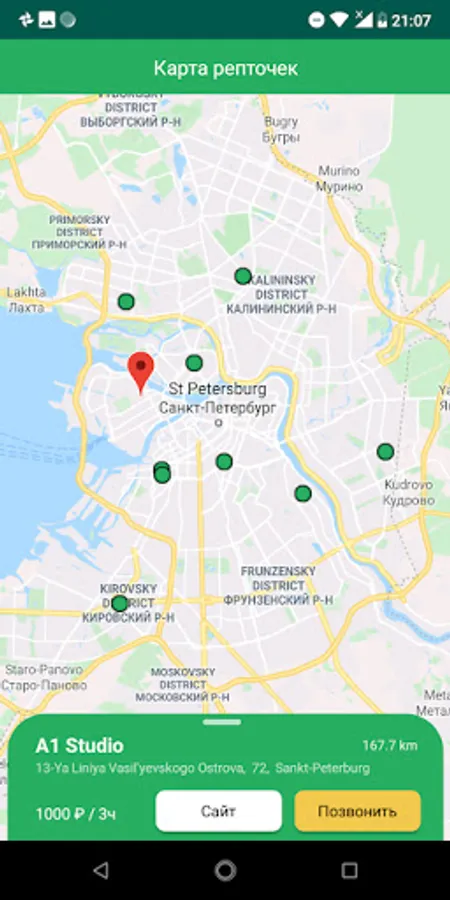 ATTENTION: At the moment, the application shows data on rehearsal studios only in St. Petersburg.