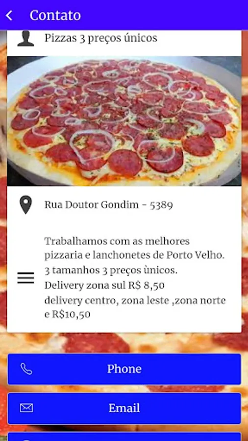 Pizzeria Porto Velho delivery 3 Unique prices P M G 33 43 53 any flavor.