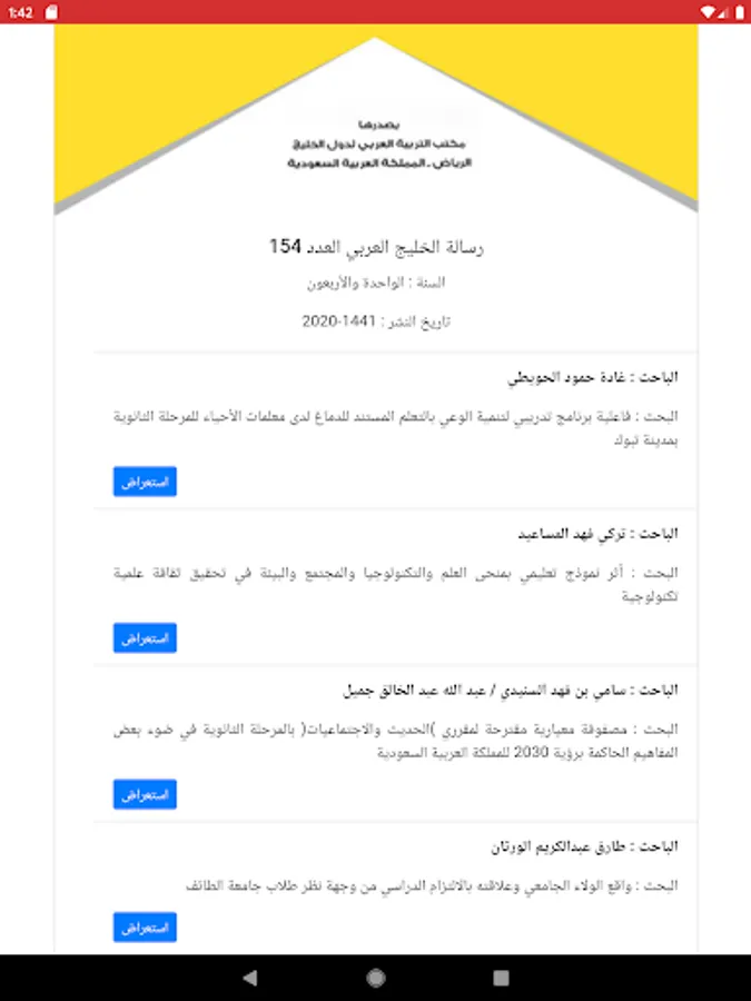 The first edition of the Educational Documentation Bulletin for the Arab Gulf States was published in 1399 AH and the second edition was issued in 1400 AH as the Educational Documentation Journal. In 1401, Arab "starting from the fourth issue.