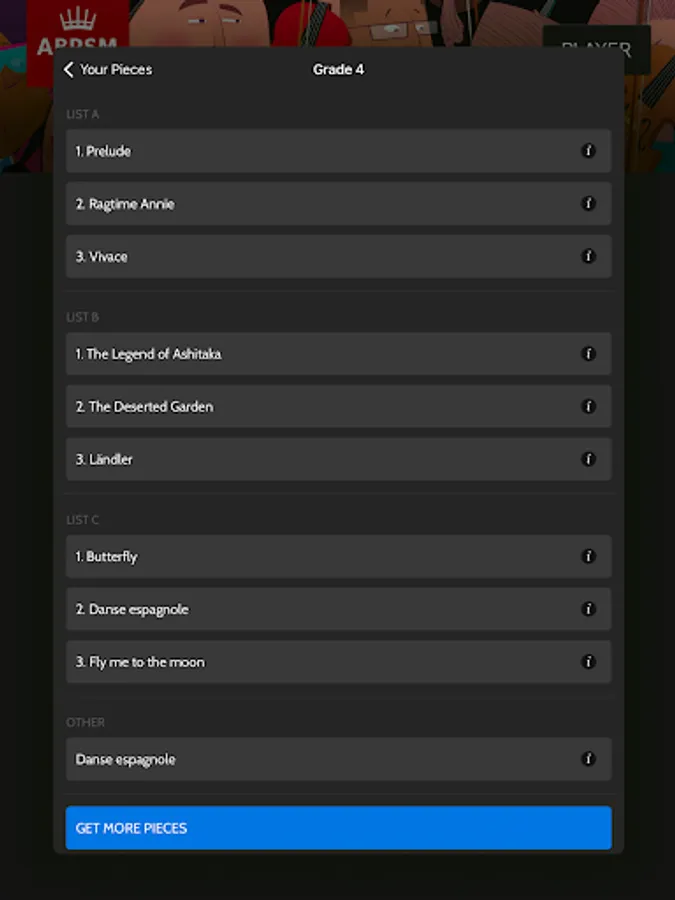 Violin Practice Partner comes with an example piece from Grade 4 and Grade 8 of the NEW ABRSM Violin Exam Pieces from 2024, allowing you to experience the app before purchasing any piece. In app you can purchase:
