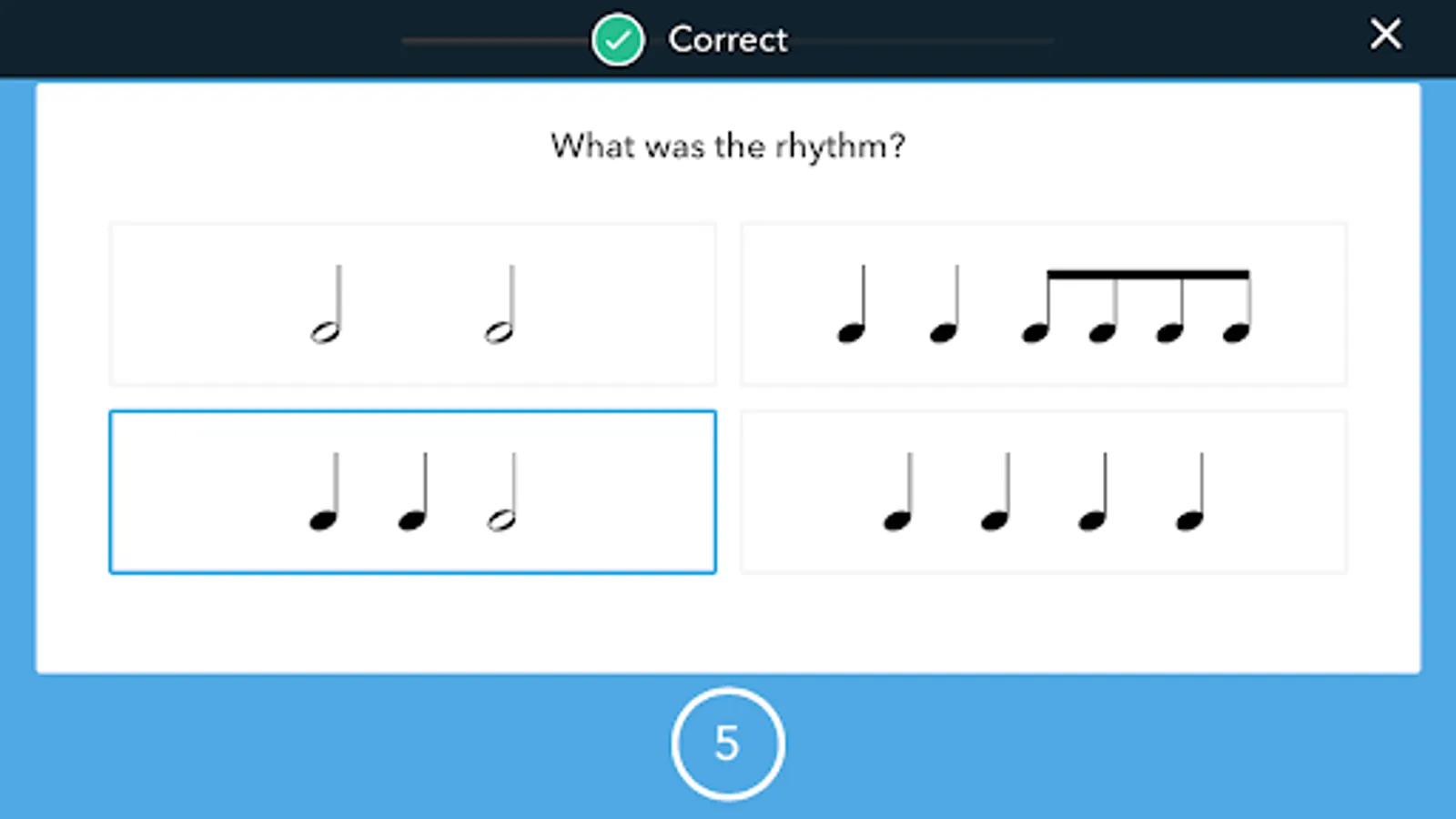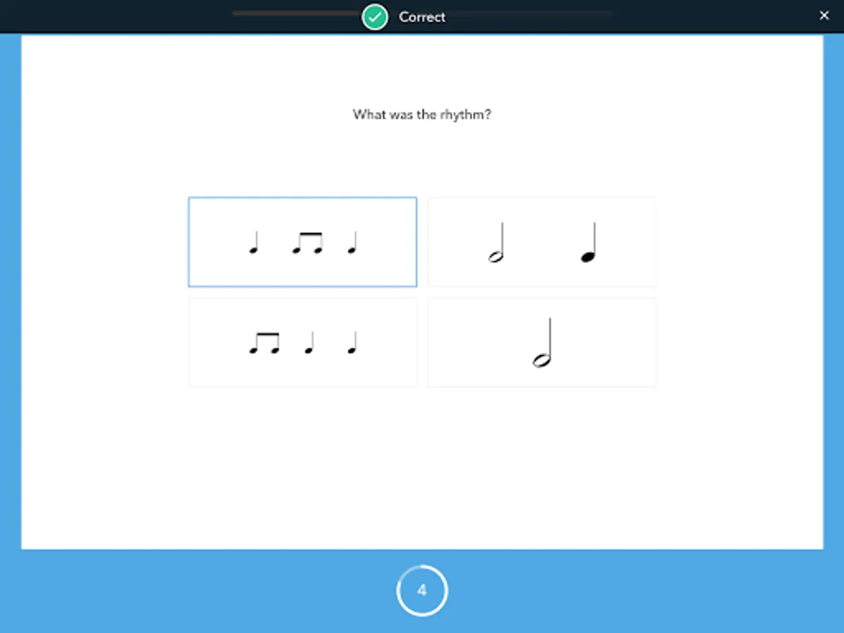 Rhythm Match - hear rhythms from the piece of Sight-Reading and identify the corresponding notation.