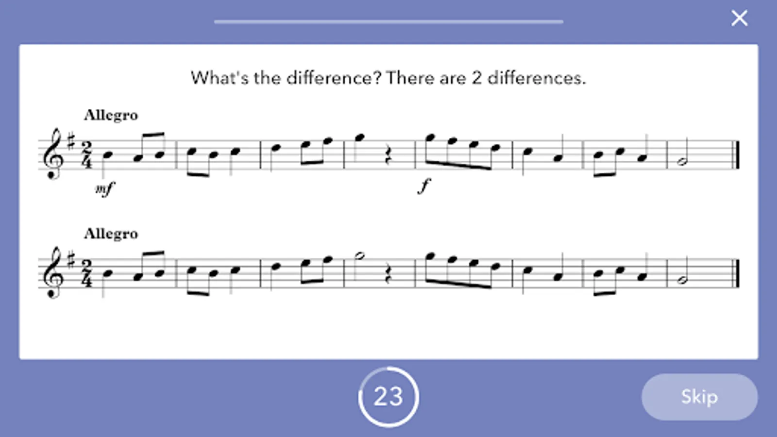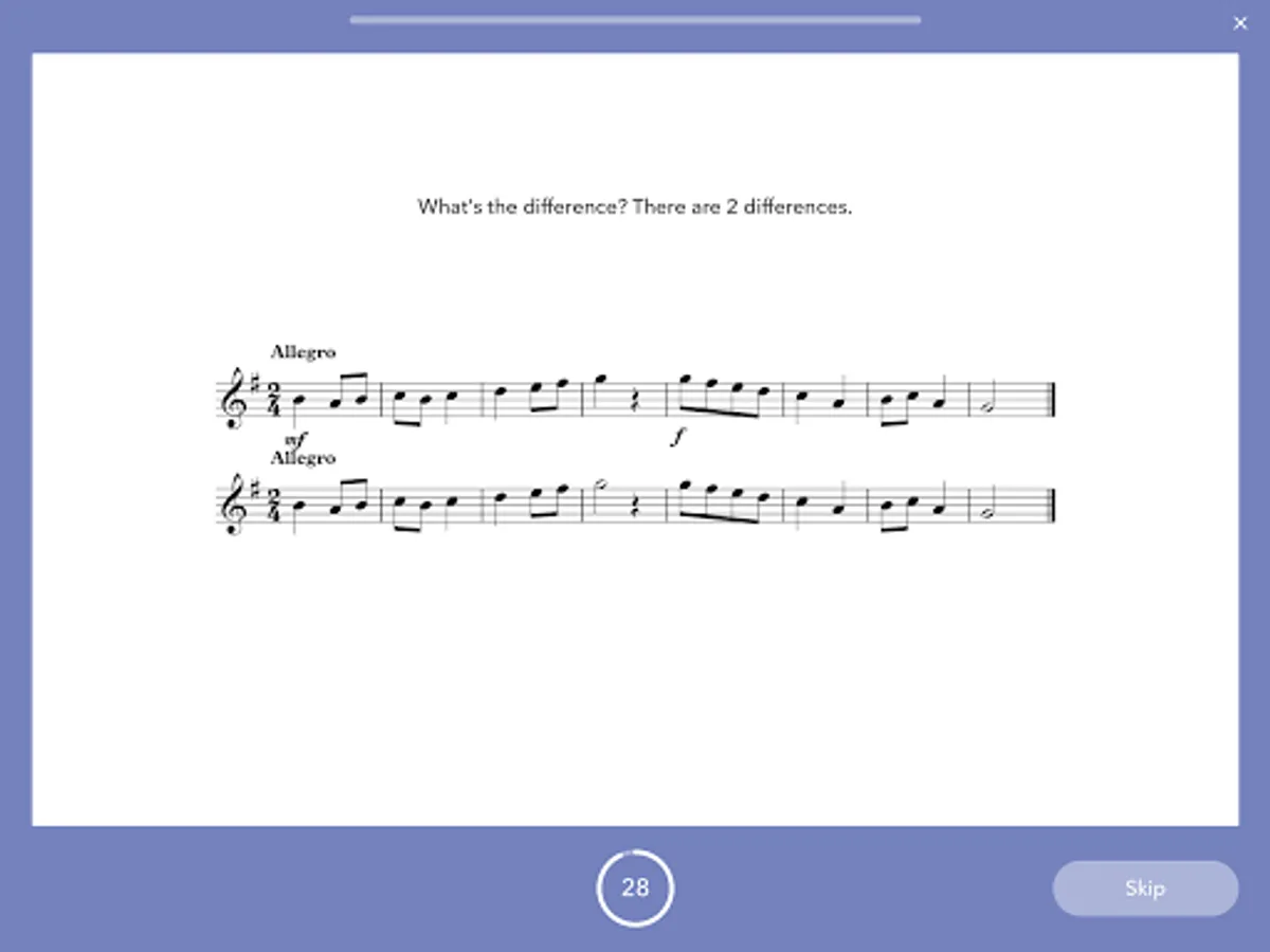 Each piece is preceded by a series of games designed to improve your ability to spot the features, patterns and characteristics of the music before you play it. Test yourself and see if you can achieve a three-star score in these fun games: