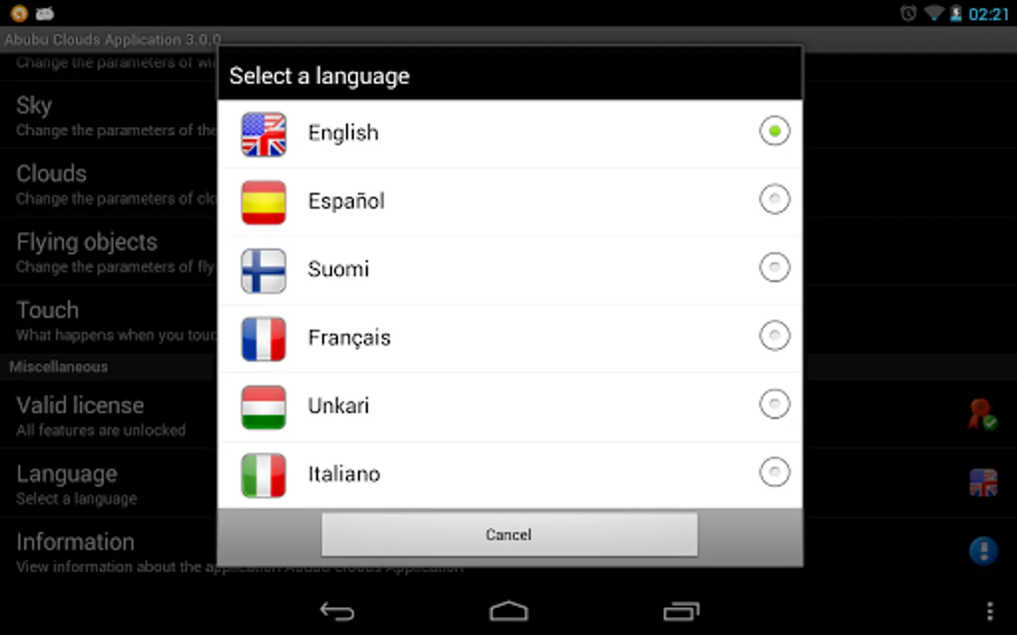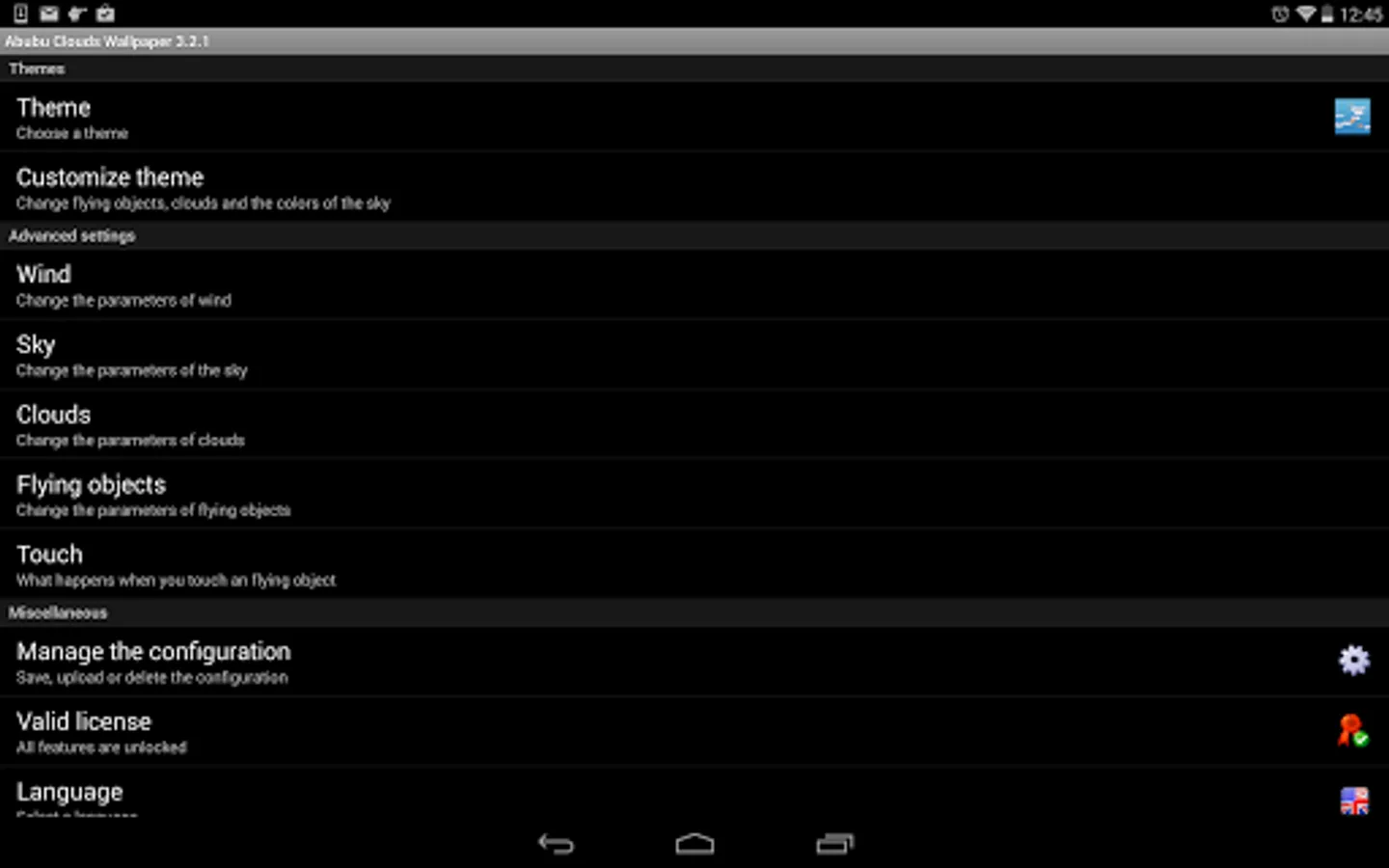 You can change the color of the sky, color of the clouds, the wind direction and many other features that you will find in the menu options.