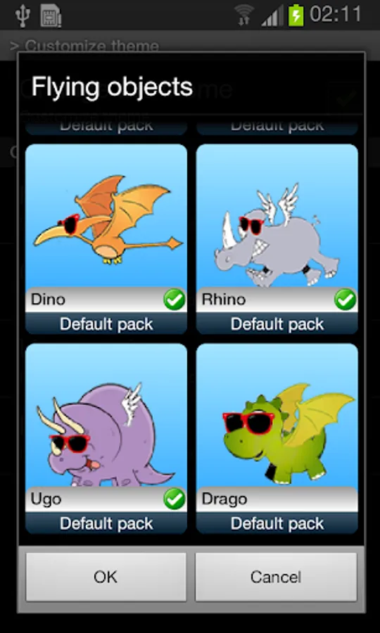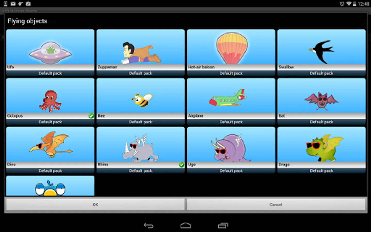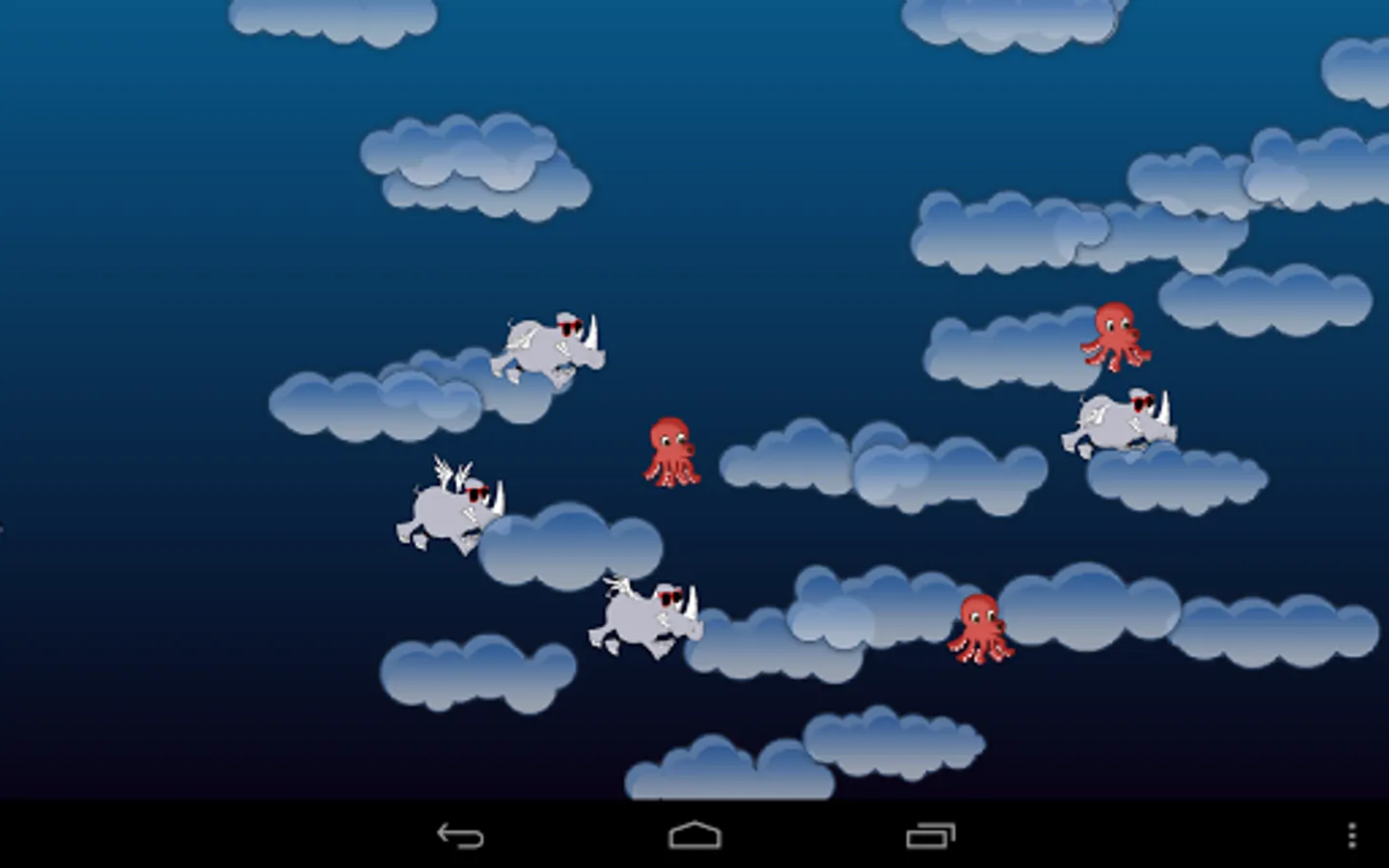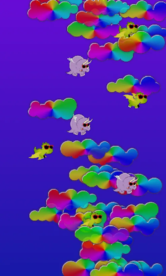 Flying objects that you can put in your sky full of clouds are: UFO, hot air balloons, the Zuppaman superhero, swallows, the famous flying polyps, bees, airplane, the friendly pterodactyl "Dino", the hallucinated bat "Bat", "Flying Rhino rhino", Dragon, Hugh the Triceratops.
