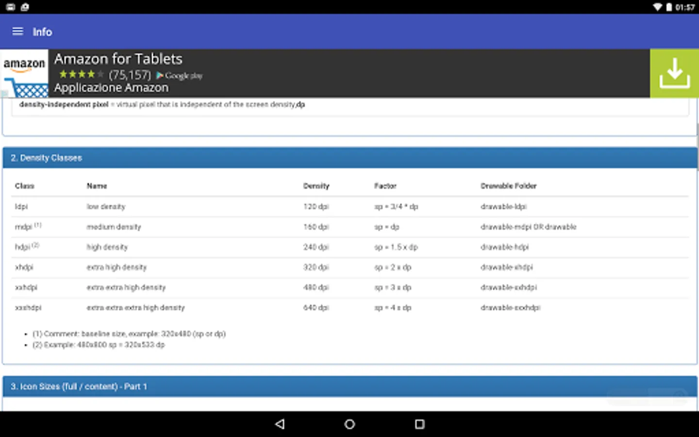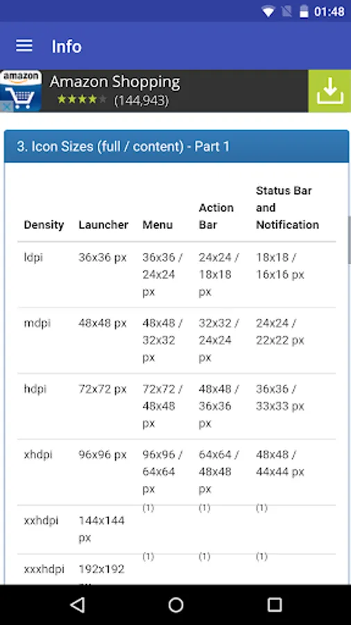 - a summary about resolution, screen density and icon size, just to easy consultation.