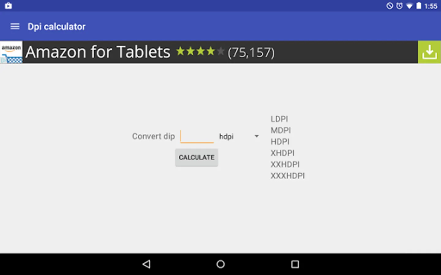 - a calculator for dpi conversion , so you can easily find the right dimensions for dpi categories.