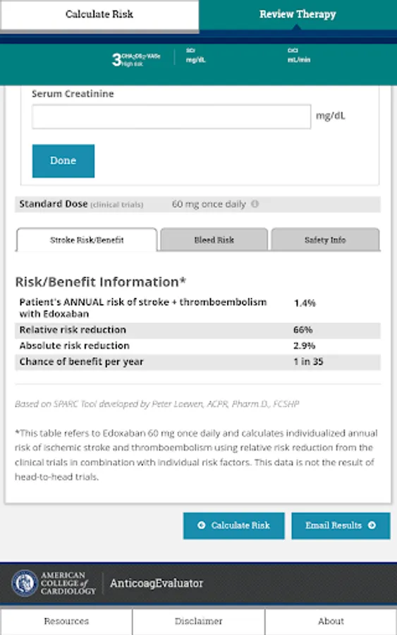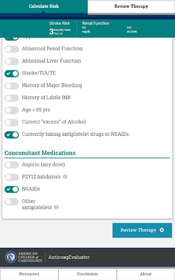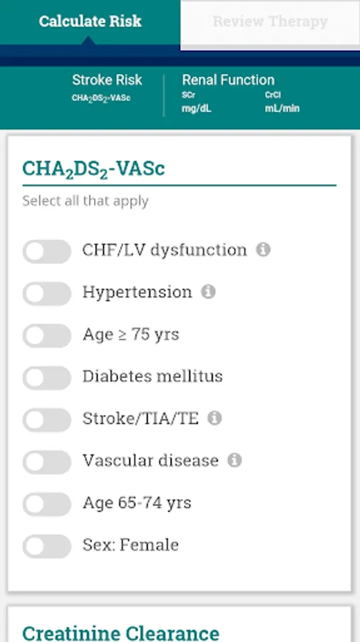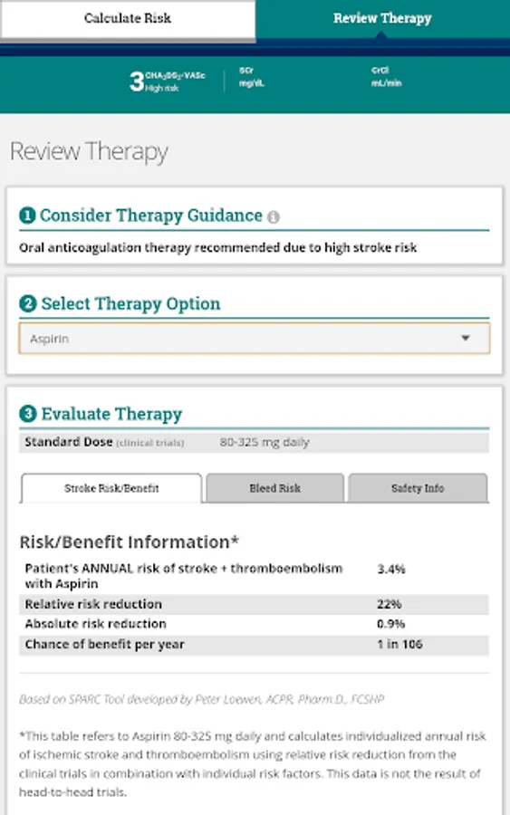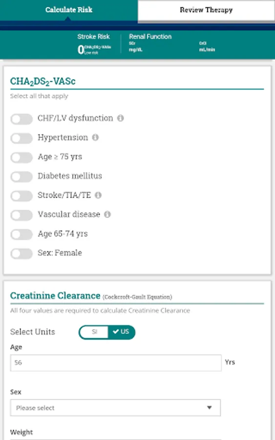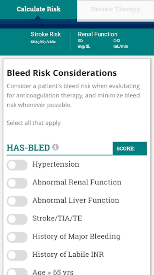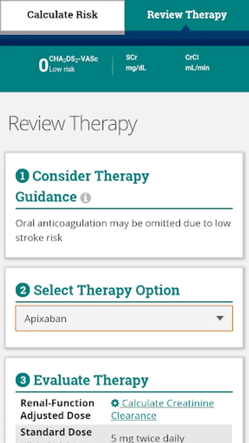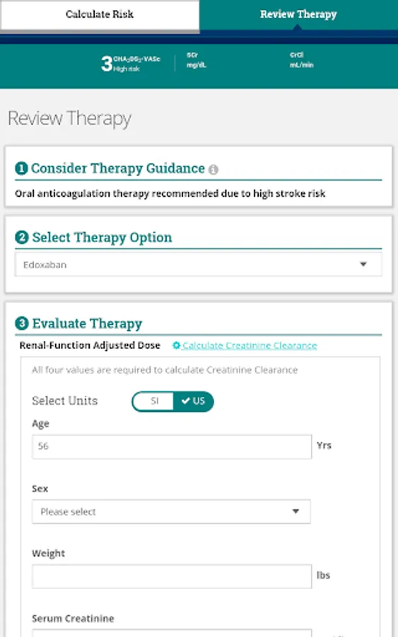 • Calculate a patient's renal function and risk of ischemic stroke, thromboembolism, and bleed