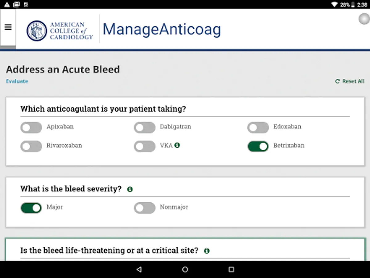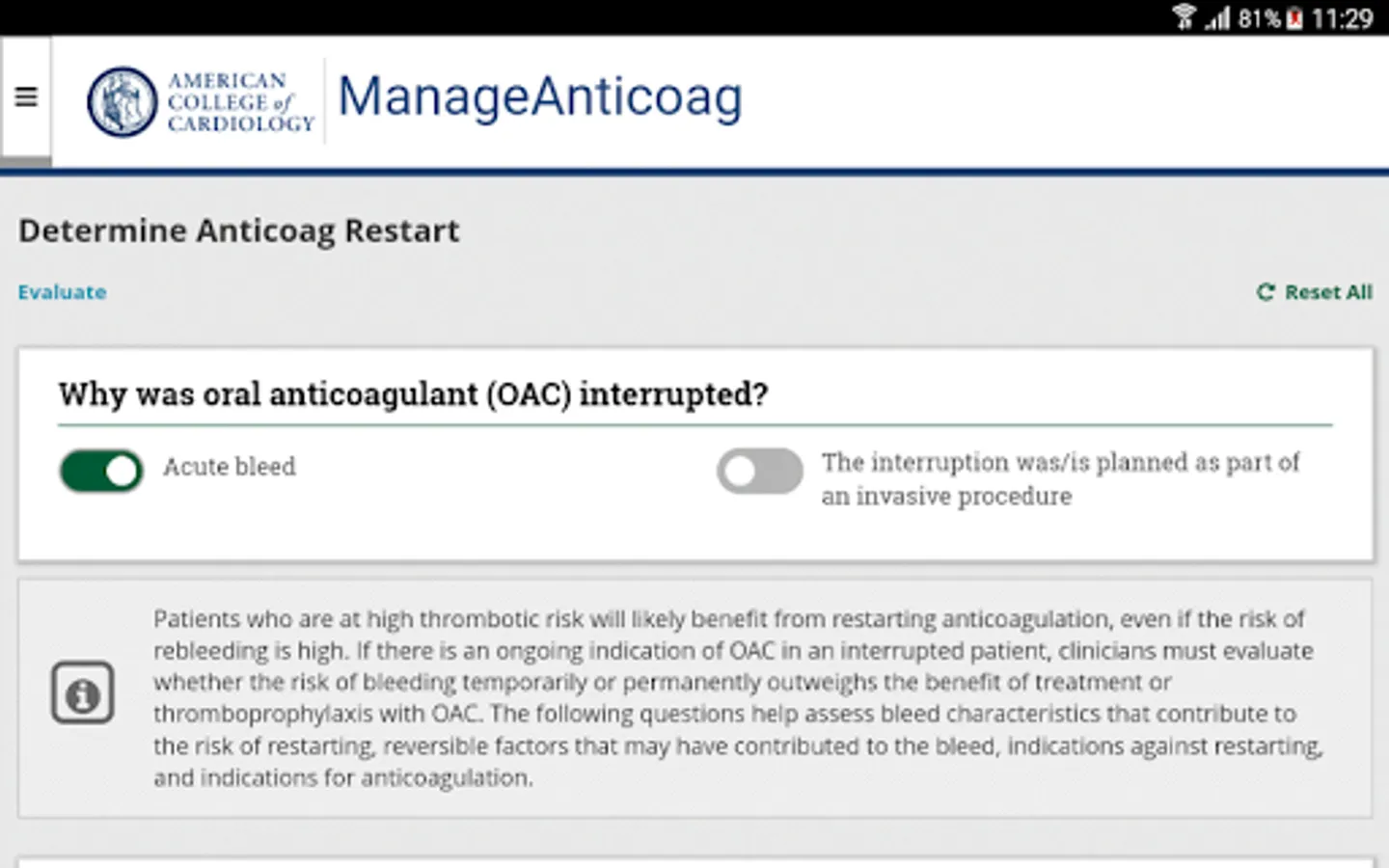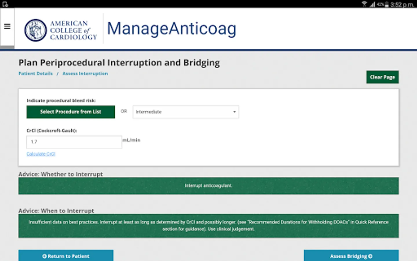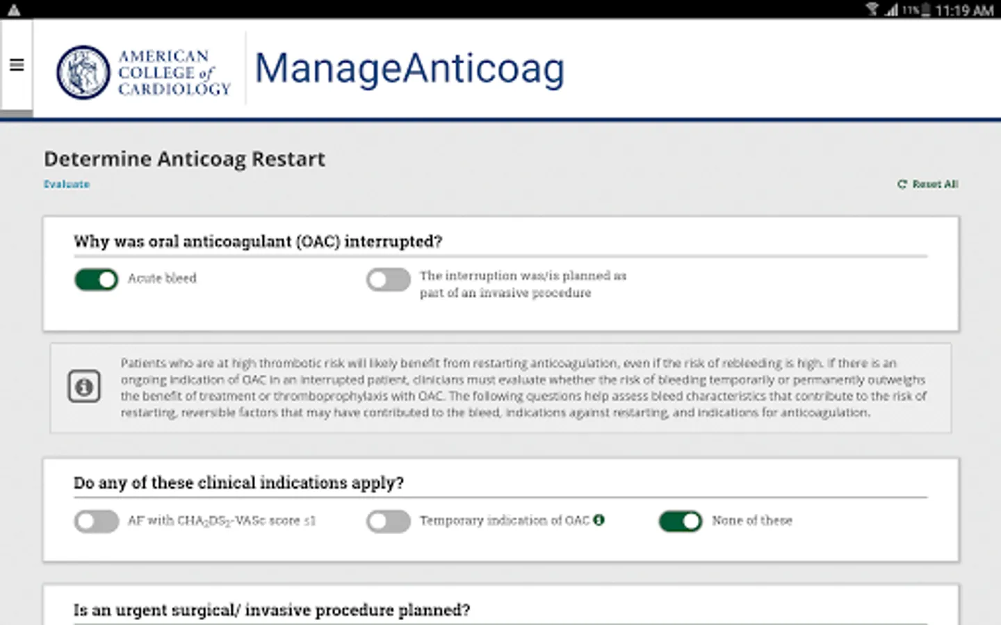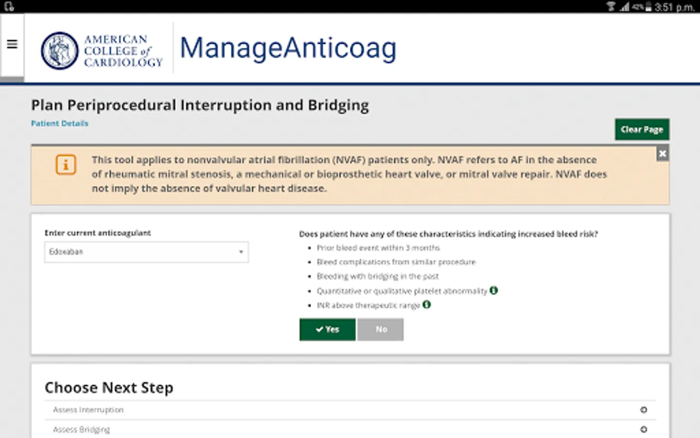 ManageAnticoag helps clinicians navigate periprocedural planning and bleed management scenarios.
