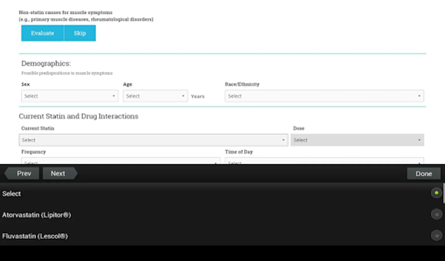 • Answer questions to evaluate possible intolerance to a patient’s current statin prescription.