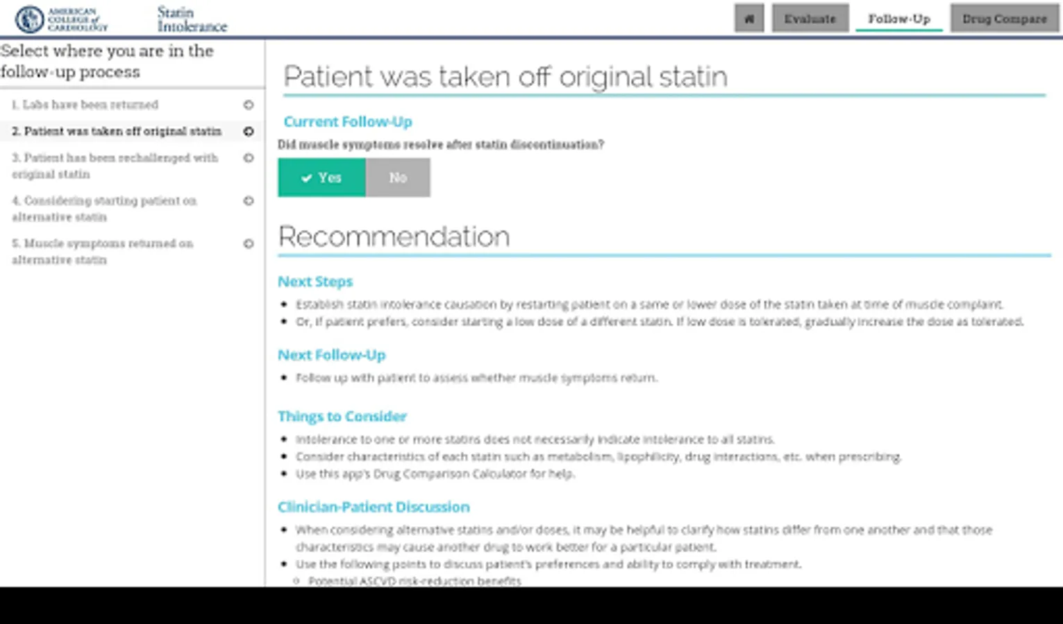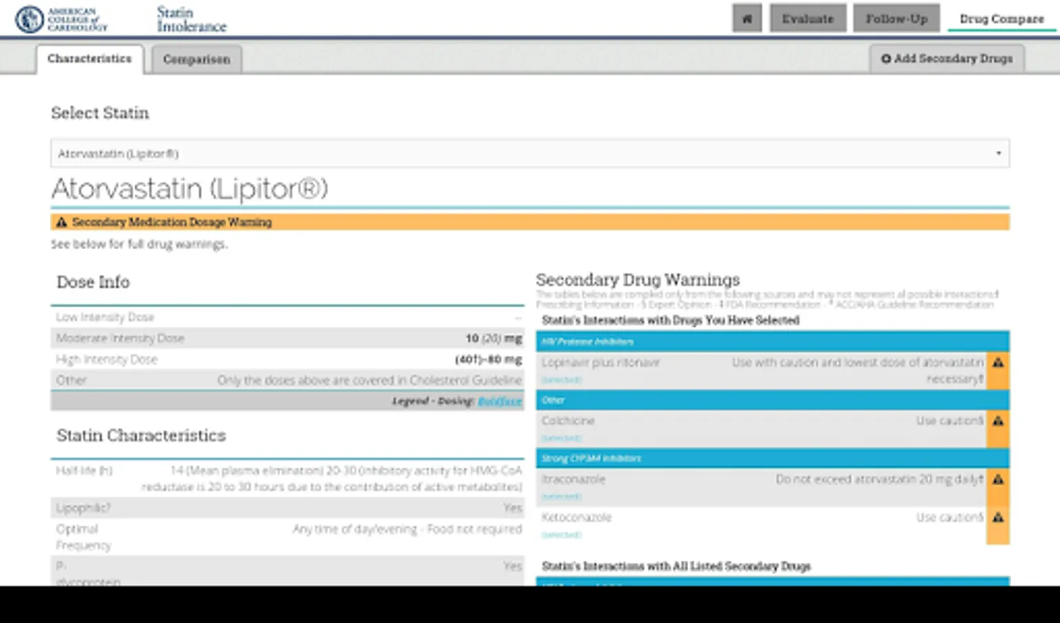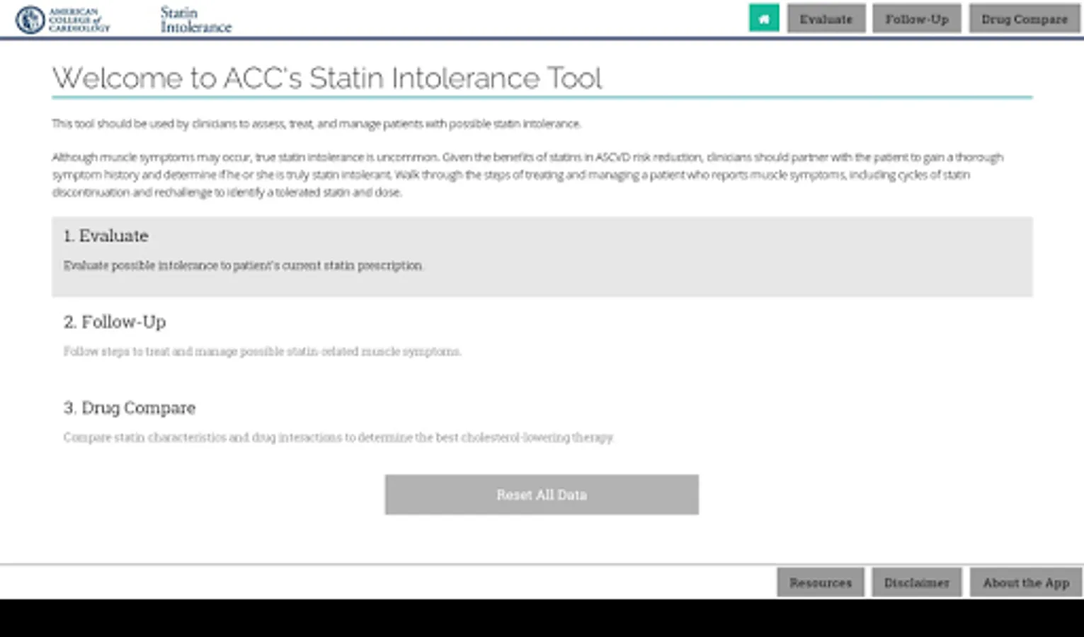 The information and recommendations in this app are derived from ACC/AHA’s 2013 Guideline on the Treatment of Blood Cholesterol to Reduce Atherosclerotic Cardiovascular Risk in Adults. It was developed as part of the American College of Cardiology’s “LDL: Address the Risk” Initiative and further refined and vetted by physicians, physician assistants, nurse practitioners, pharmacists, and other relevant specialties; and through user testing in care settings with patients.