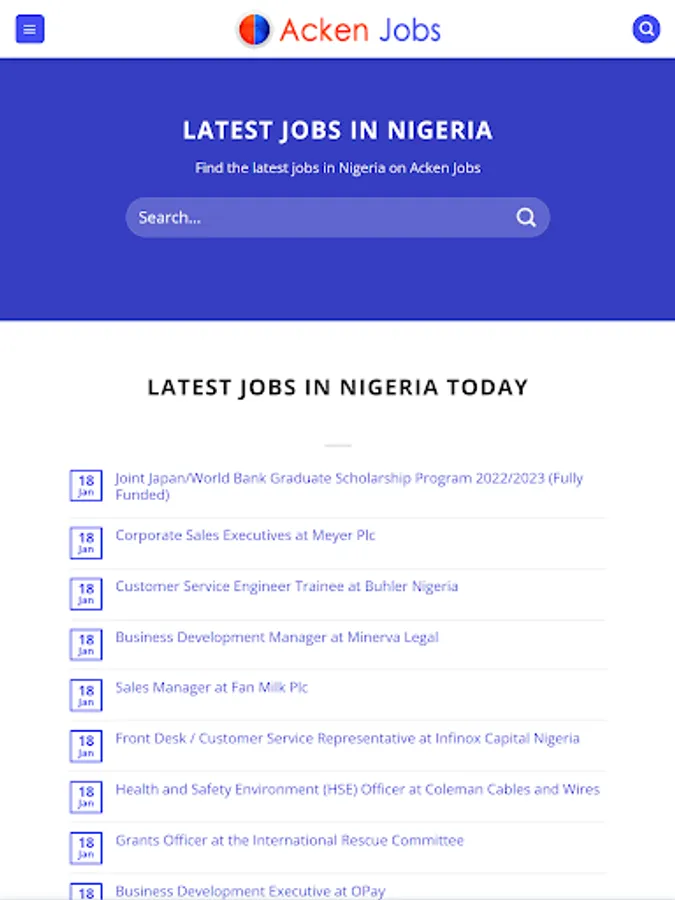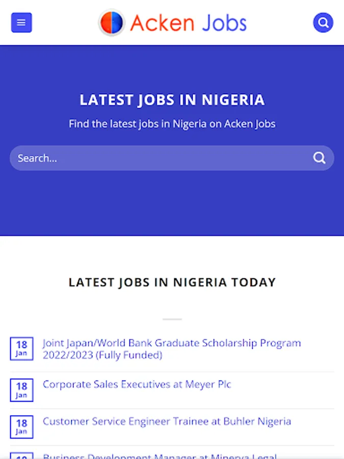Acken Jobs is an online job search website that publish the latest job vacancies in Nigeria as well as career, business, scholarship and other opportunities in Nigeria.