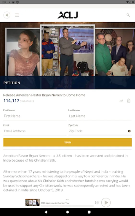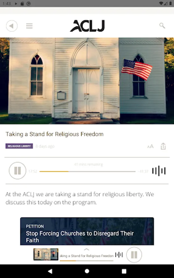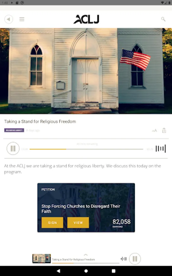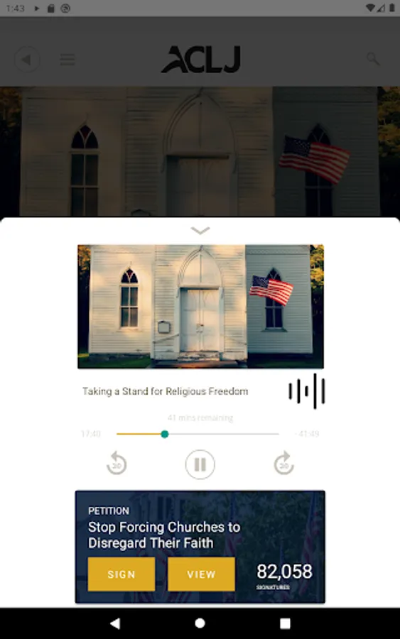 The American Center for Law and Justice (ACLJ), with Chief Counsel Jay Sekulow, is dedicated to ensuring the ongoing viability of freedom and liberty in the United States and around the world. The ACLJ’s iOS app connects you to citizens concerned about pro-life issues, Christian persecution worldwide, our Constitution, Israel, and breaking news.