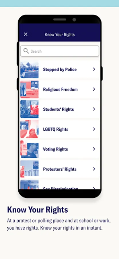 • Access the ACLU's full library of "Know Your Rights" information offline.
