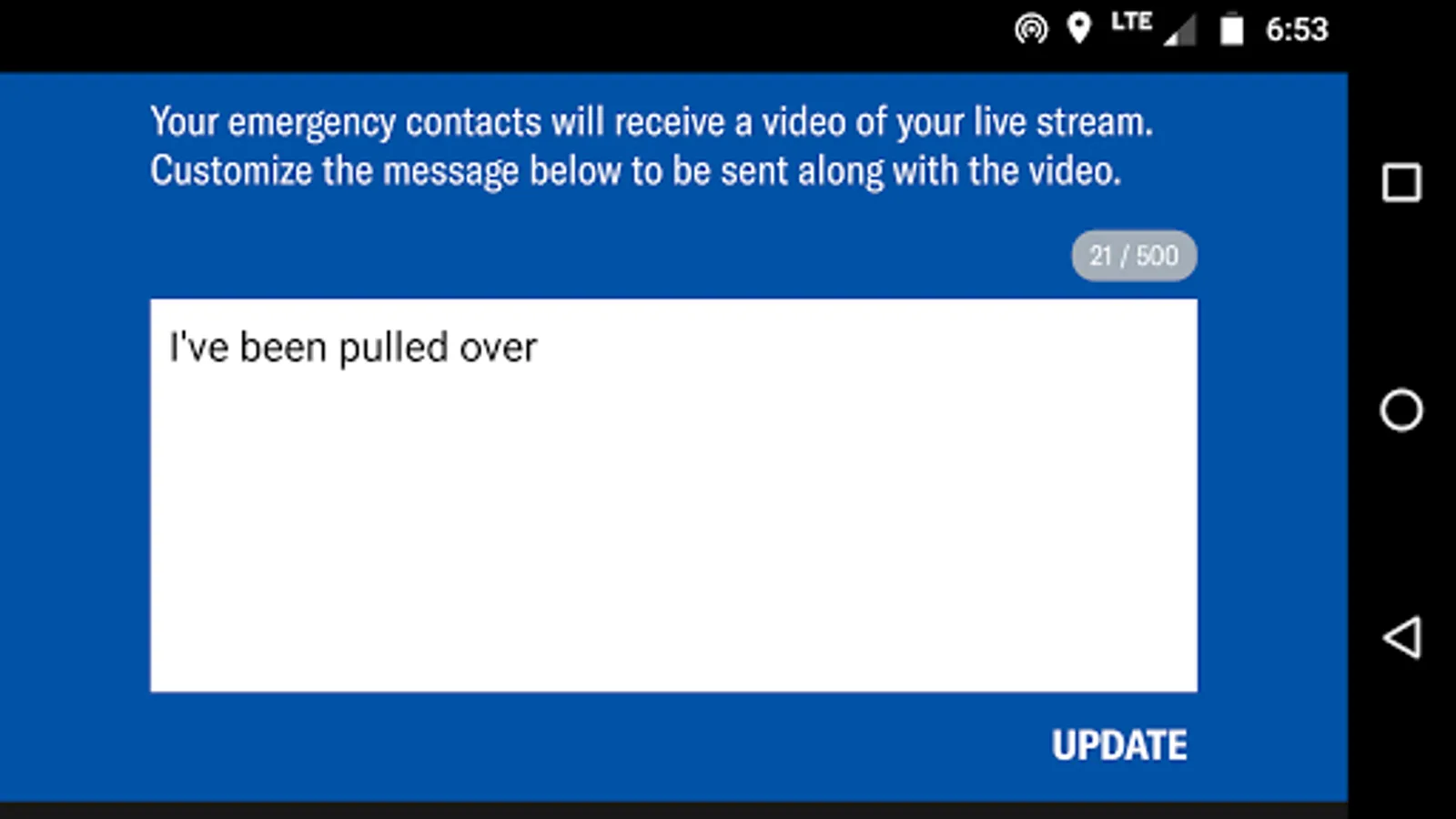 MigraCam is designed to help people living in border communities notify their family members and friends of their encounters with law enforcement and immigration officials. MigraCam records incidents and streams them live to a list of pre-determined emergency contacts with a customized message.