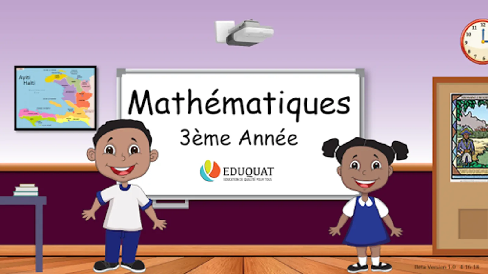 This app covers grade 3 for math in English, French and Haitian Creole including geometry, measures, problems, mental calculations, numeration, and operations.