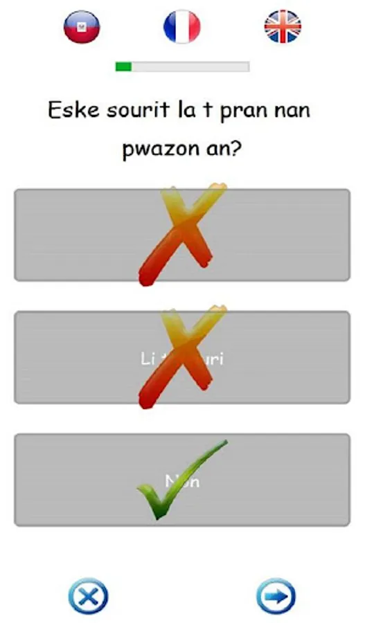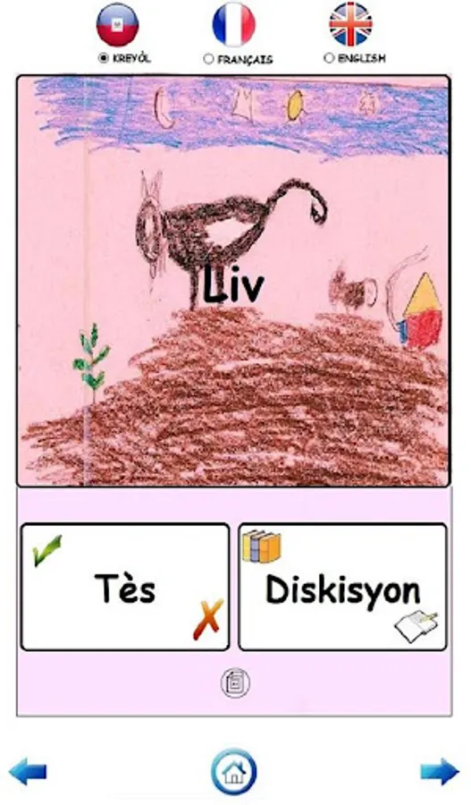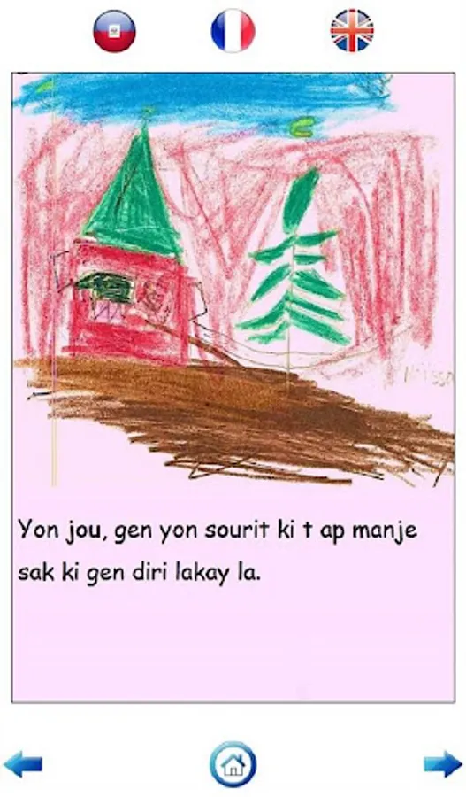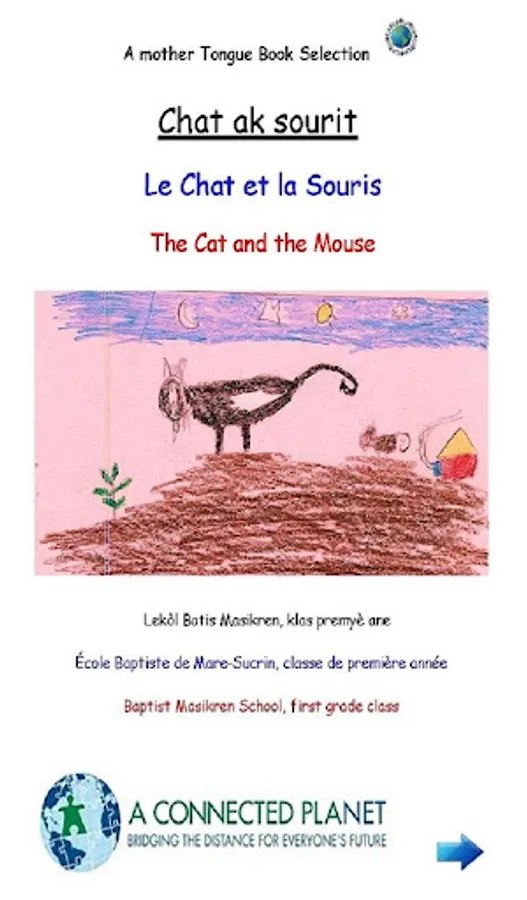Chat ak Sourit was originally written in Haitian Creole and has been translated into French and English. Audio in all three languages is provided in the application. The Matènwa Community Learning Center provided the Haitian Creole recordings for the application.
