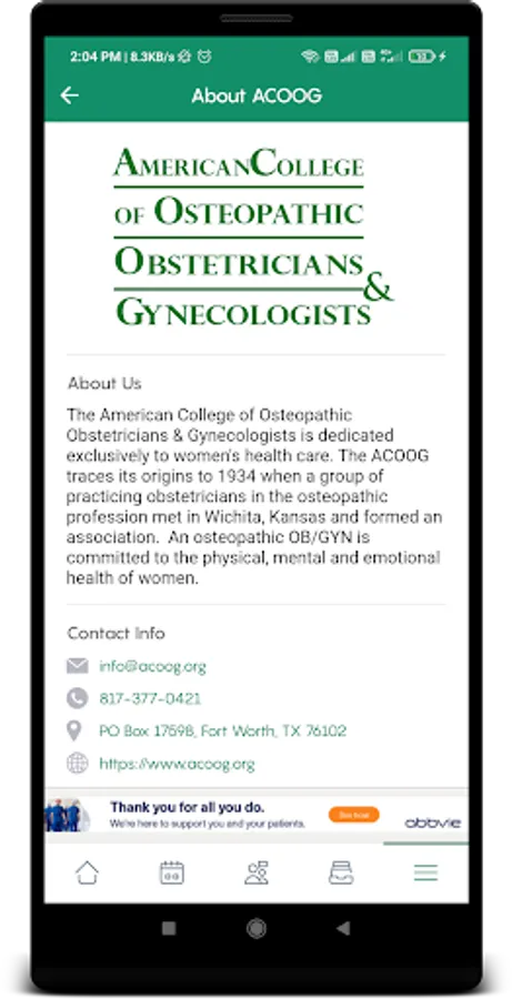 The ACOOG App provides convenient access to all things ACOOG. It includes access to live and online CME, ACOOG’s forums, news and newsletters, resources and much more. Easily access materials from activities you’ve attended, renew your membership, connect with other members, and even donate to MEFACOOG, all using your existing ACOOG profile. The ACOOG App is your easy to use, year-round tool to stay connected with the American College of Osteopathic Obstetricians and Gynecologists.