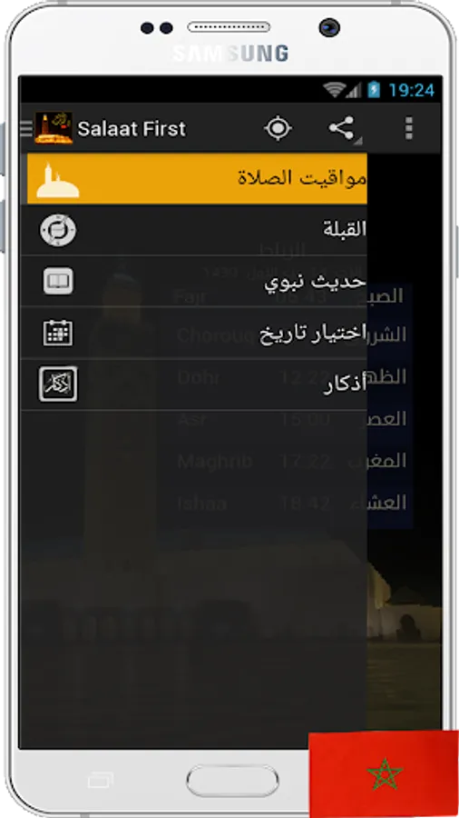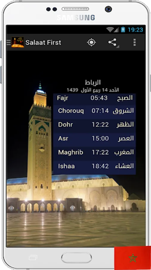 The program of prayer times and call to prayer in Morocco gives all the times of the five daily prayers in all cities of Morocco and the cities of the world as well, by specifying your location directly in order to show you the times of prayer in your city and town. It also uses different methods of calculating afternoon prayers according to many countries and countries around the world, which gives him more accuracy in determining prayer times and Qiblah.