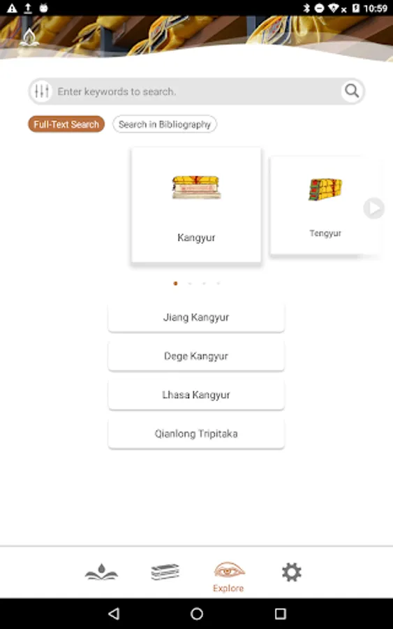1. ADARSHAH is an app that lets you read and conduct searches of ancient documents in a digital format. There are three main categories of texts: (a) Kangyur (the words of the Buddha translated into Tibetan); (b) Tengyur (commentaries by Indian scholars translated into Tibetan); and (c) Tibetan Buddhist texts.