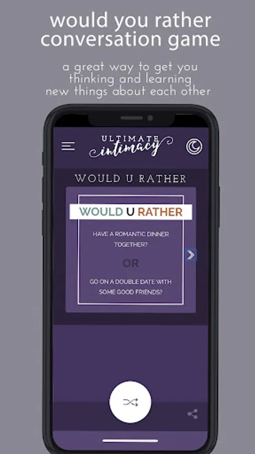 Ultimate Intimacy is the ULTIMATE Marriage and Intimacy App for couples. The Ultimate Intimacy App is clean, non-graphic and so much fun, and because it is Christian-friendly, you won't find any nudity, or vulgar material.