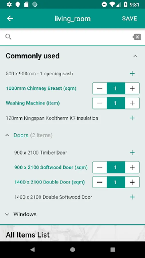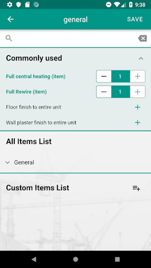 create a new project create the list of works to be carried out on it. They build up the list of works by selecting items from a predefined list of possible works. These include everything from replacing a door, to a complete electrical rewire of the property. They can also add custom items that are not on the list.