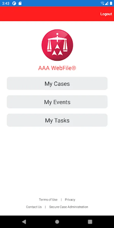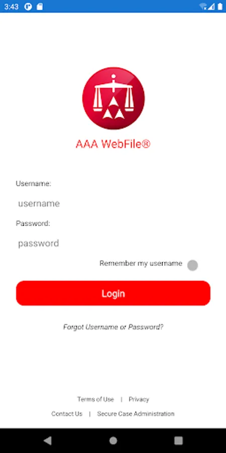 The WebFile mobile app provides parties with access to their American Arbitration Association (AAA) and International Centre for Dispute Resolution (ICDR) pending cases on their mobile devices. Parties log in to the app using their WebFile username and password.
