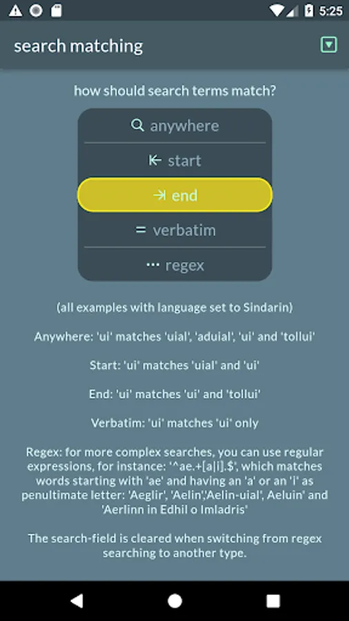 - several search modes: wildcard, begin- and end-of-word matching (useful to find rhyming words), verbatim and regular expressions