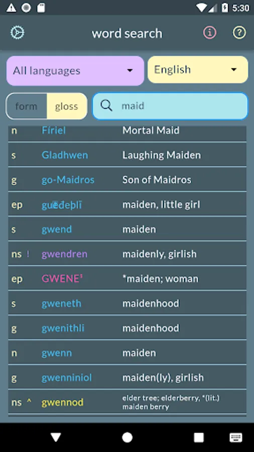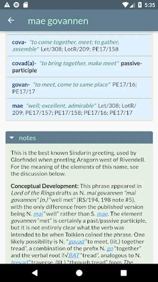Paul Strack's Eldamo lexicon attempts to consistently organise that material, which adds up to many thousands of words in nearly fifty languages. This app is meant as a handy tool to search and access this vocabulary.
