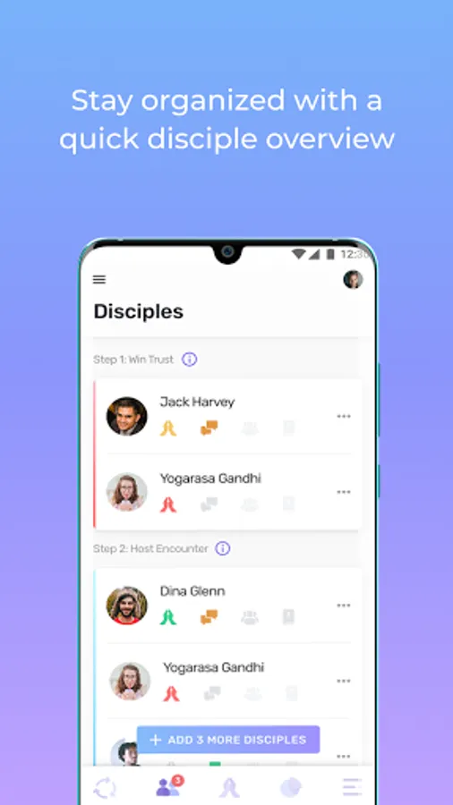 Jesus told His disciples, “I will make you fishers of men” and, before He ascended to heaven, “Go, make disciples of all nations.” We believe every Christian should be engaged in intentional relationships with those who do not follow Jesus, and we must strategically pray and work so that each one will be given the opportunity to commit to following Jesus and becoming a disciple-maker themselves. However, we know from personal experience that disciple-making can be a difficult and confusing process, especially when working cross-culturally. My10 is an app that serves as your personal disciple-making coach. We take the guess work out of discipling your contacts by guiding you through a five-step disciple-making process. Using this app, you will be able to track your disciple-making activities, regularly assess your disciples' progress, stay on top of prayer requests and send regular reports to your supervisor or accountability partner. And remember, with His command to go make disciples, Jesus promised to be with His disciple-makers-always.
