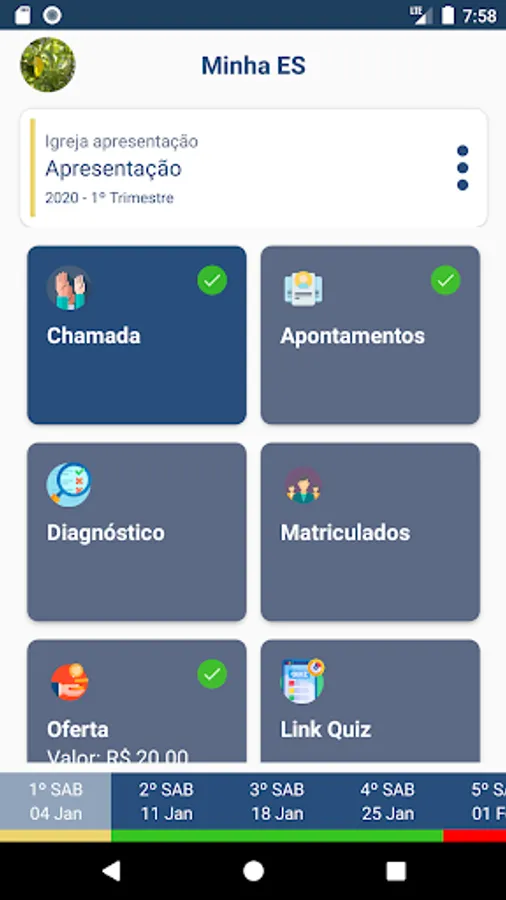 The Minha ES - Igreja app is a tool to facilitate the life of the Sabbath school teacher and director. It can be used to make notes, call, view the diagnosis in real time, generate links for students to make their notes.